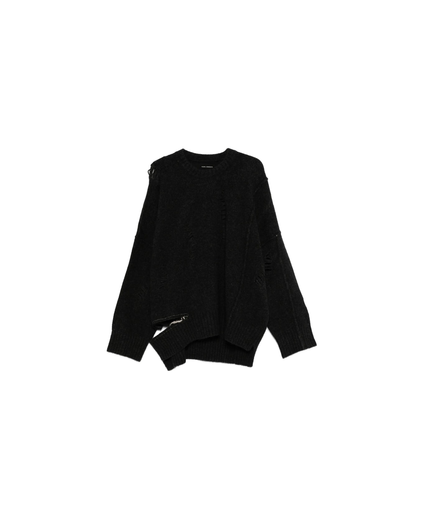 dark grey merino blend distressed detailing ribbed cuffs round neck