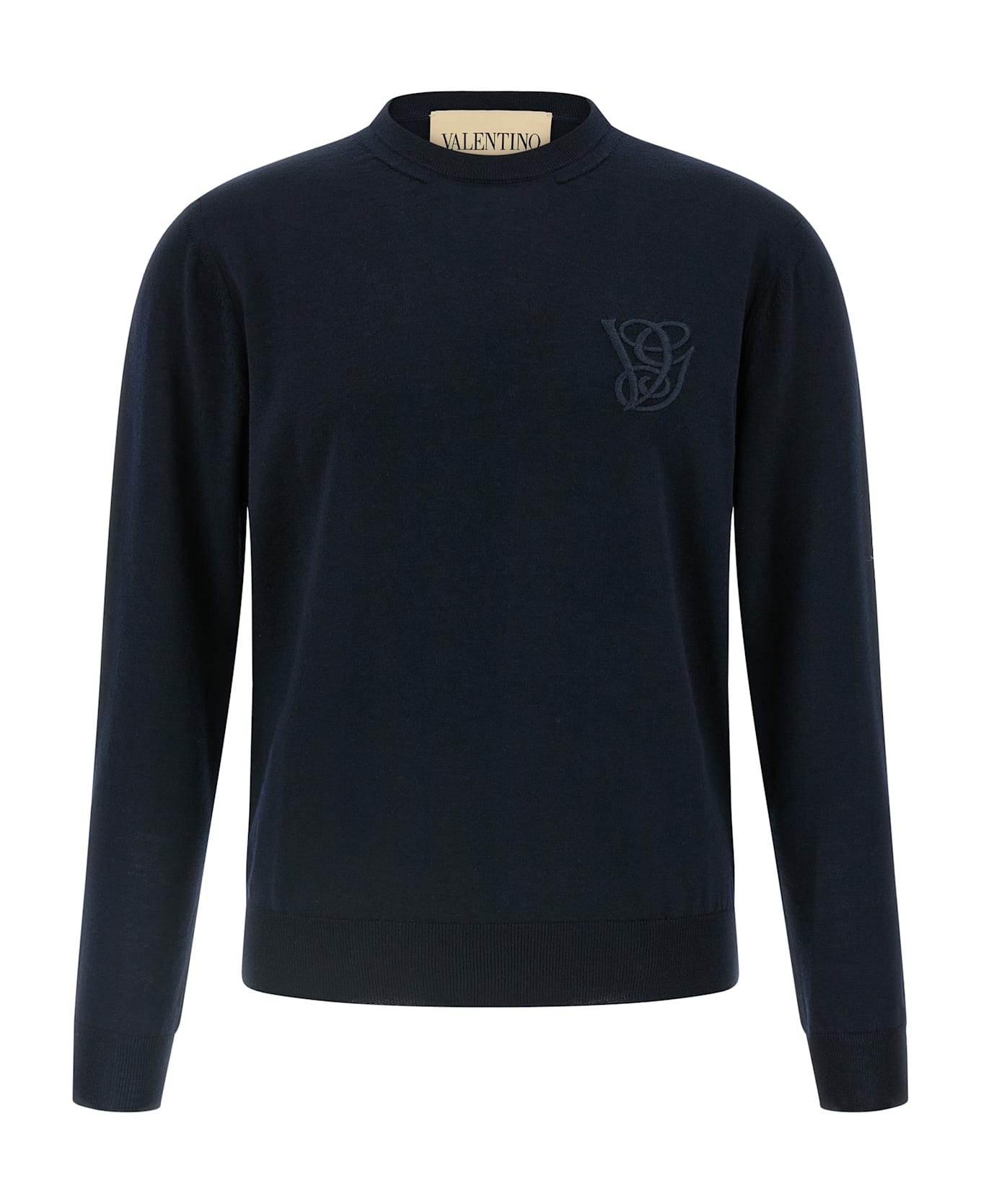 Light wool sweater with tone-on-tone logo embroidery on the front, crew neck, long cuffed sleeves. Composition: 100% virgin wool