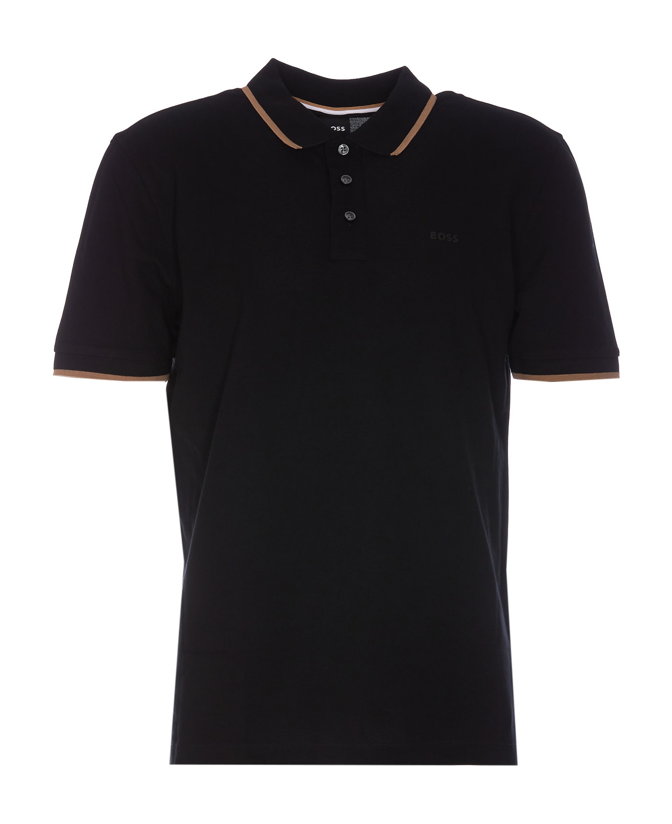 Hugo Boss black polo, regular collar, frontal buttons closure, frontal print logo