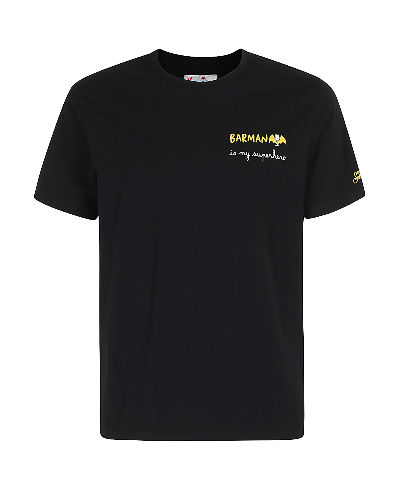 Arnott T-shirt - MC2 Saint Barth - Black color - Heavy cotton fabric - Crew neck - Short sleeve - Embroidered logo on left sleeve - Contrast chest embroidery - Regular fit