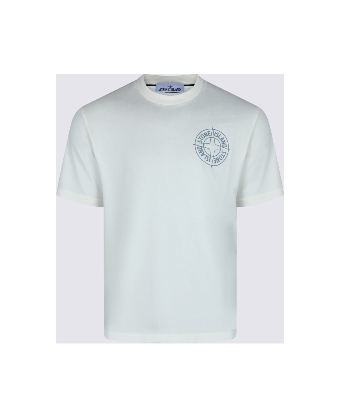 Ivory cotton t-shirt from Stone Island featuring crew neck, short sleeves, logo stamp and regular vestibility. Composition: 100% Cotton