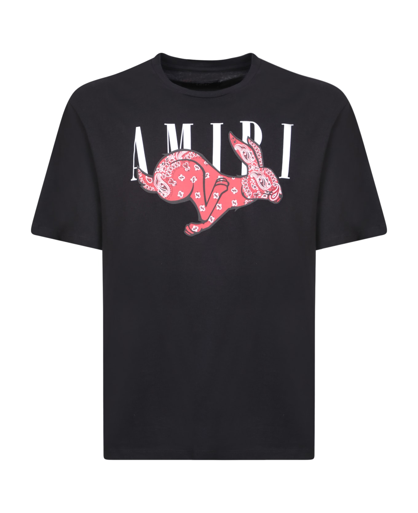 Round neck. Short sleeves. Logo print on the front. Rabbit motif. Straight hem. Color: black
