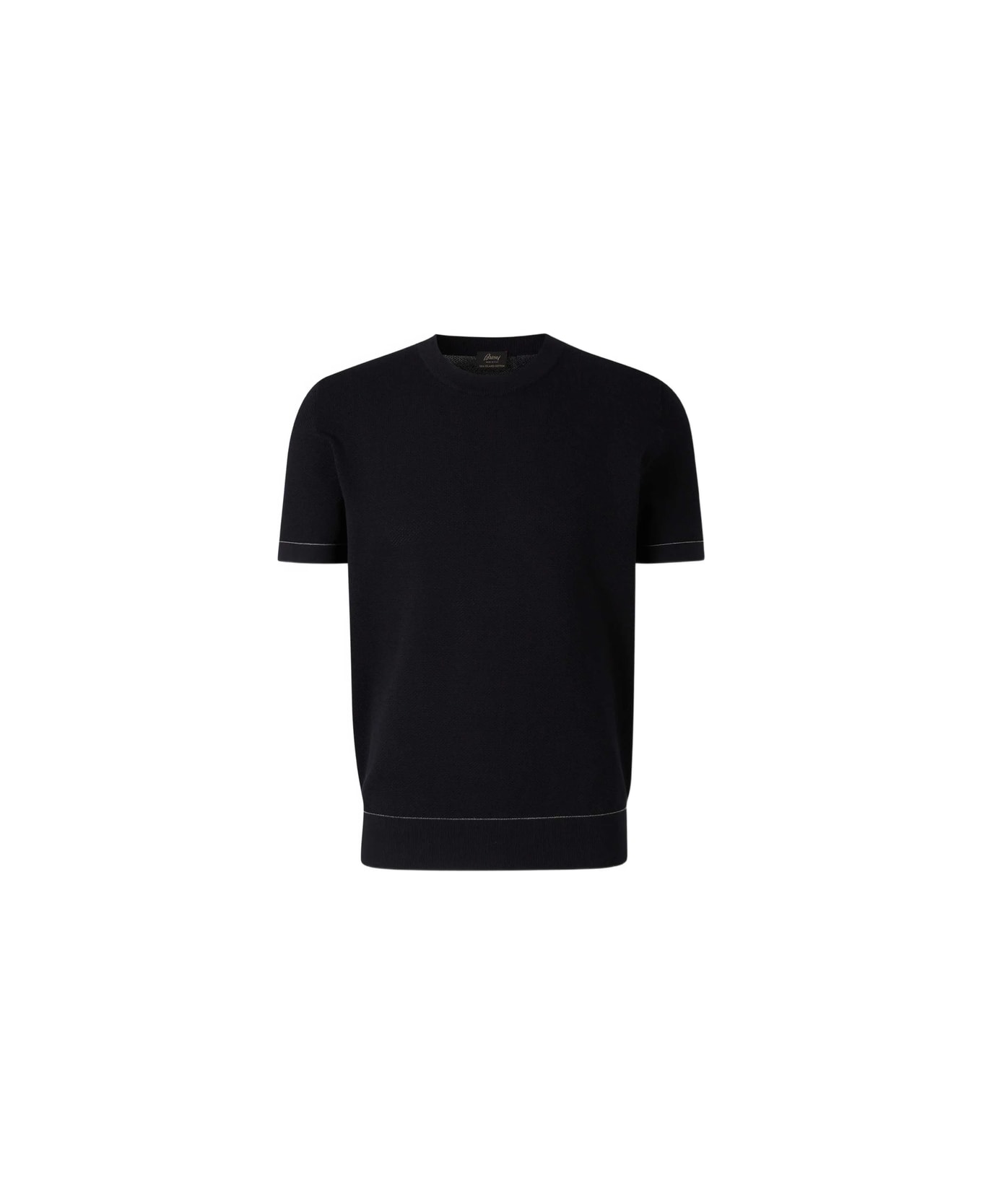 navy blue crew neck short sleeves ribbed hem ribbed cuffs