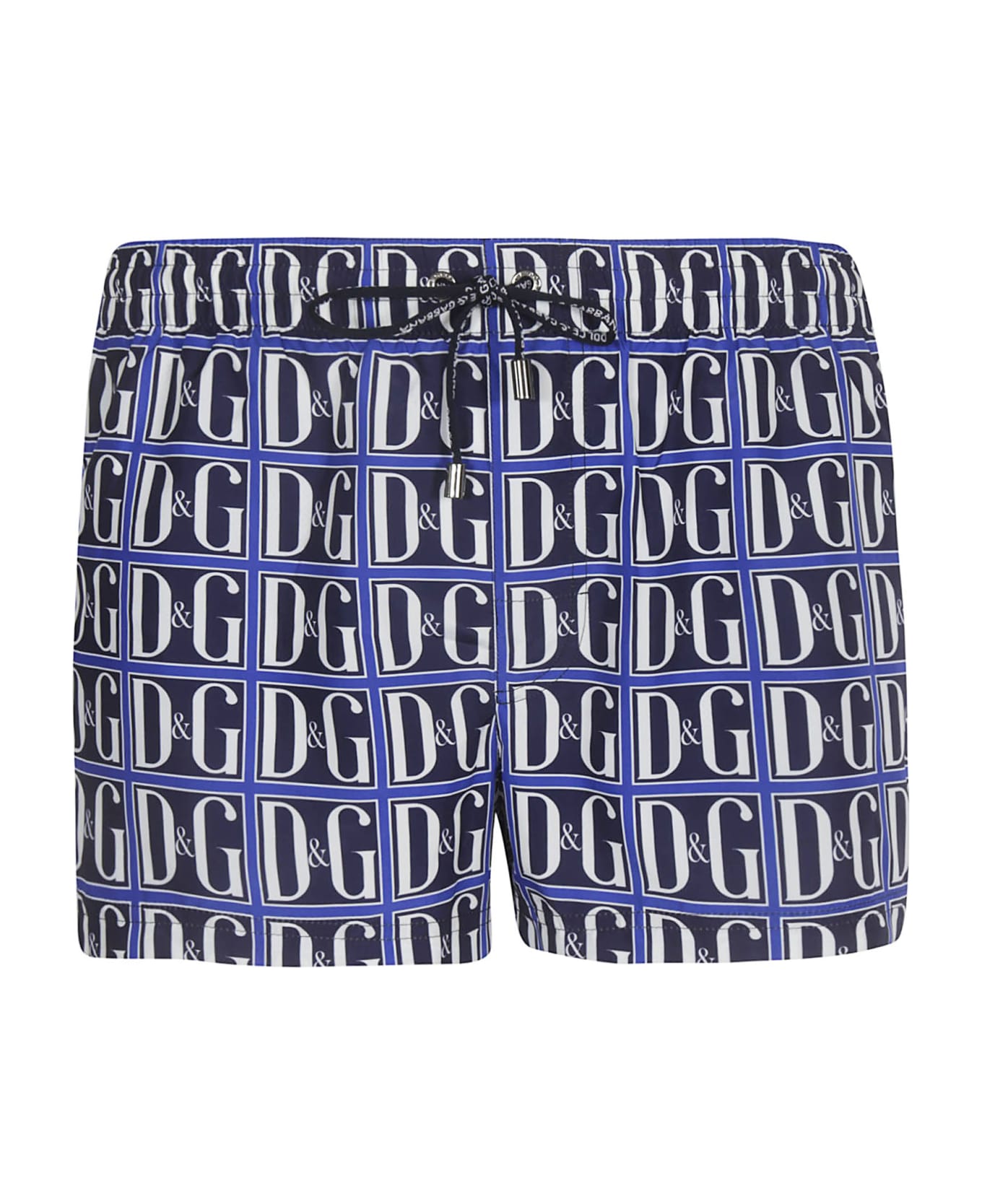 Logo Motif Boxer Shorts from Dolce & Gabbana: Blue Logo Motif Boxer Shorts with elasticated waistband, drawstring waist fastening, side slit pockets and rear zip pocket Composition: 100% Polyester