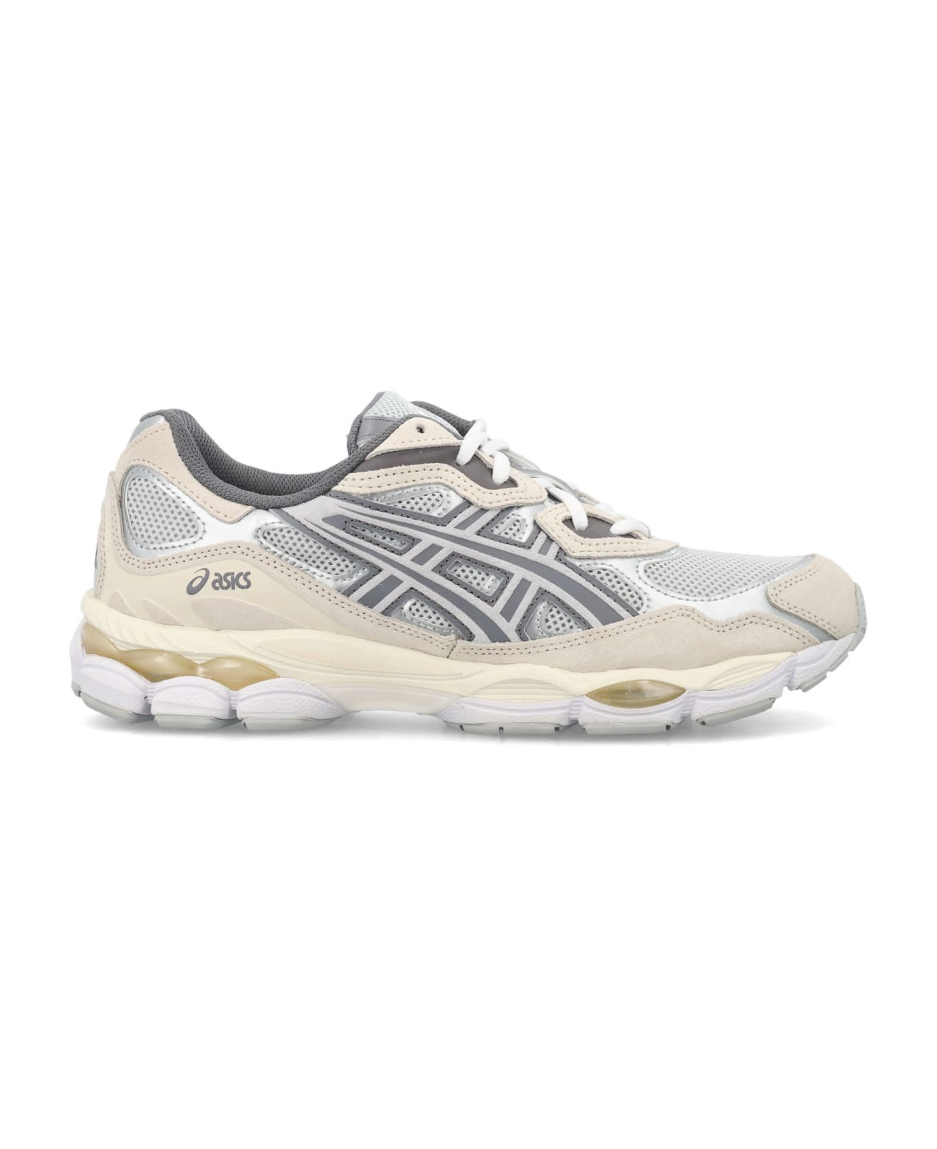 Gel-nyc Sneakers By Asics. Featuring: Low-top Lace-up Fastening Fabric And Suede Upper Pointed Toe Embroidery Panels "a" Logo On Padded Tongue Padded Collar Rubber, Cushioned Sole With Transparent Inserts