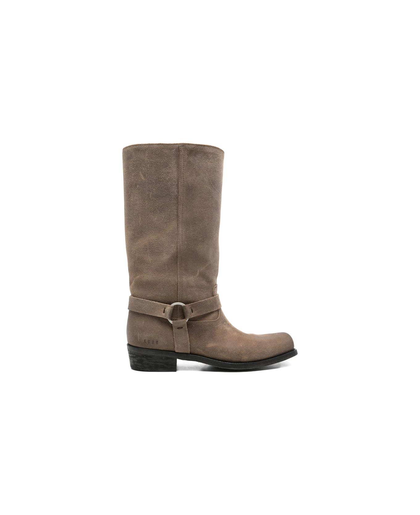 dark beige suede upper strap detail square toe pull-on style This piece comes complete with a protective dust bag.