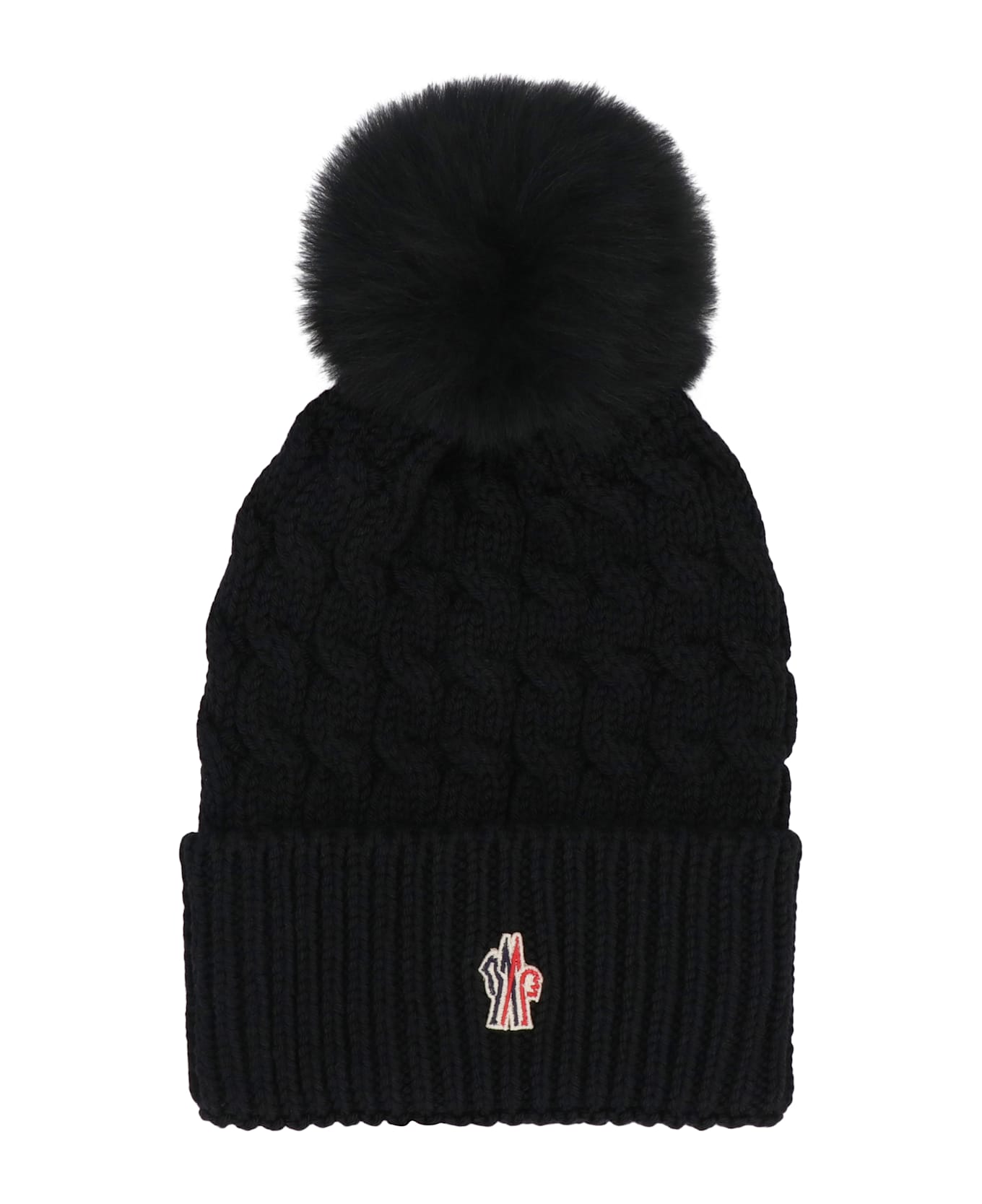 Knit beret with a cable knit design in white, characterized by a classic and versatile style. it features a fur pom-pom on the top and a folded band, adding a touch of elegance and comfort. ideal for adding a stylish and warm accent to your winter outfits. made with soft materials to ensure a comfortable fit.