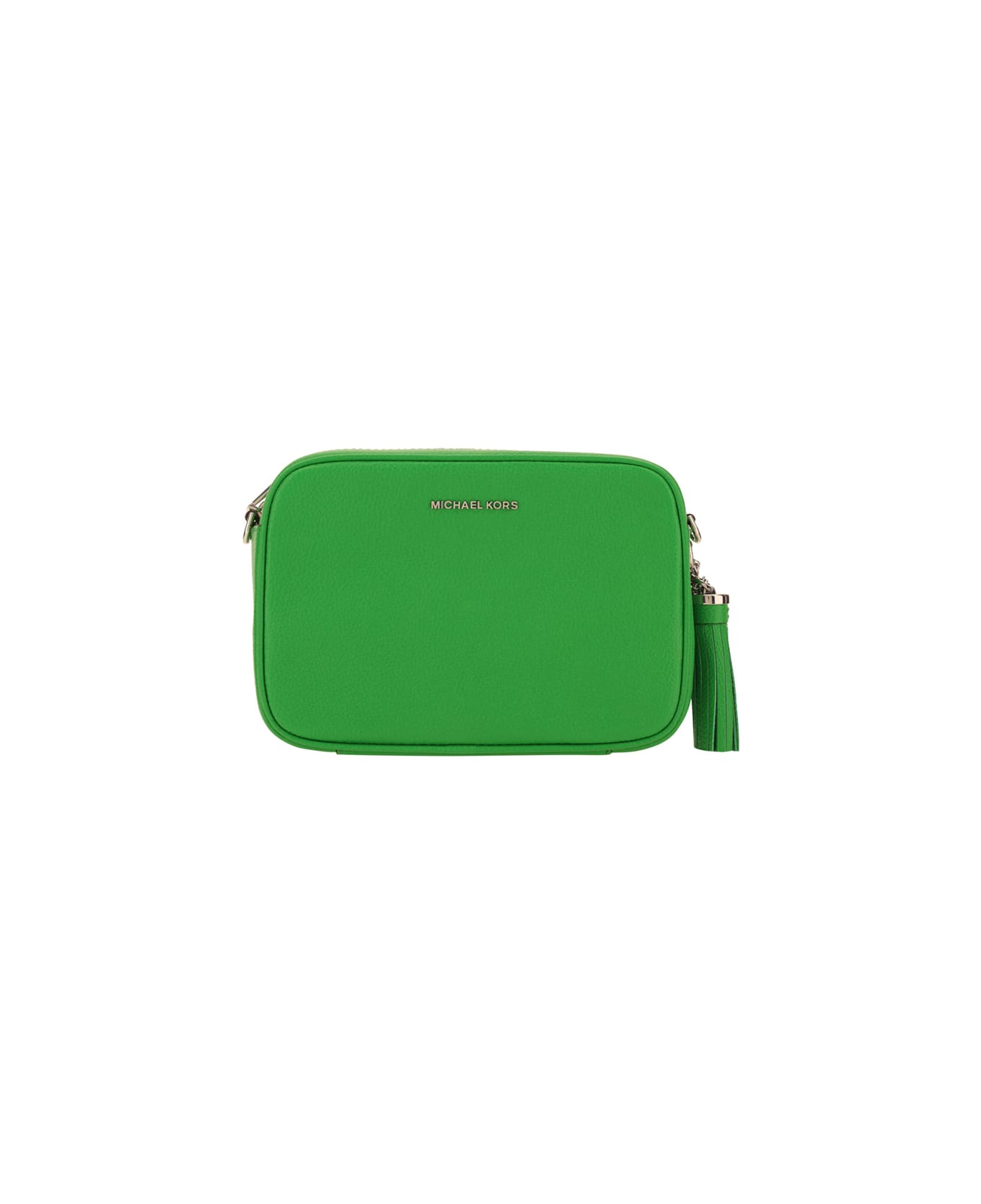 Calfskin ginny shoulder bag by michael kors, top zip fastening, slider with leather tassel detail, removable and adjustable flat leather shoulder strap, plaque with iconic brand monogram embossed on the front, hammered leather design.