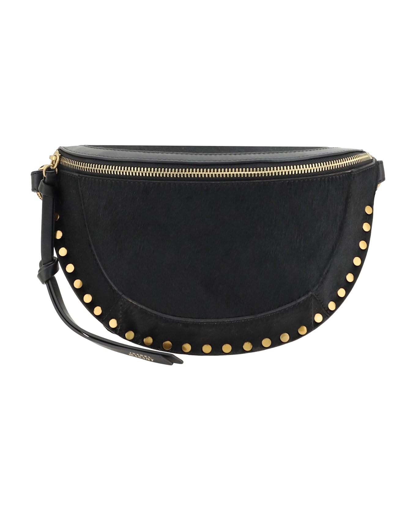 Leather skano fanny pack by isabel marant, front zipper closure, adjustable leather shoulder strap, flat stud detail around the perimeter, one interior compartment, pony skin finish. Composition: 100% % Calf Leather Bos Taurus