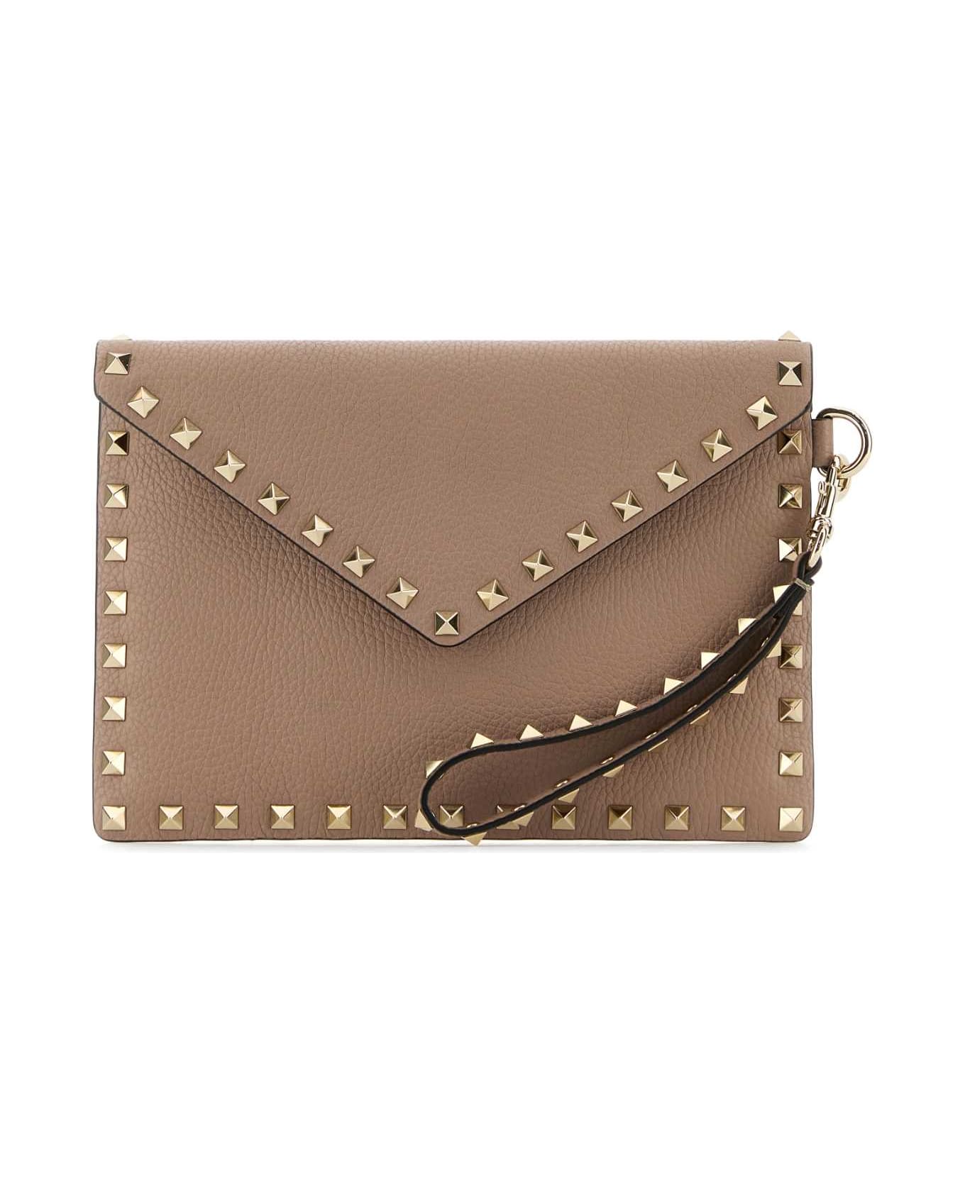 Antiqued Pink Leather Rockstud Clutch from Valentino Garavani