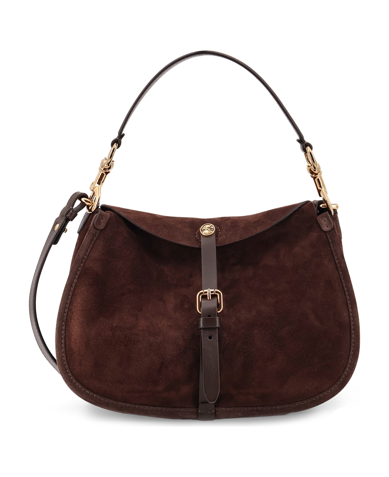 Magnetic button closure and metal buckle Removable and adjustable leather shoulder strap One internal flat pocket Made in Italy Suede Lining: leather W: 30 cm x H: 19 cm x D: 10 cm SKU: WP1C0019AP341M0406