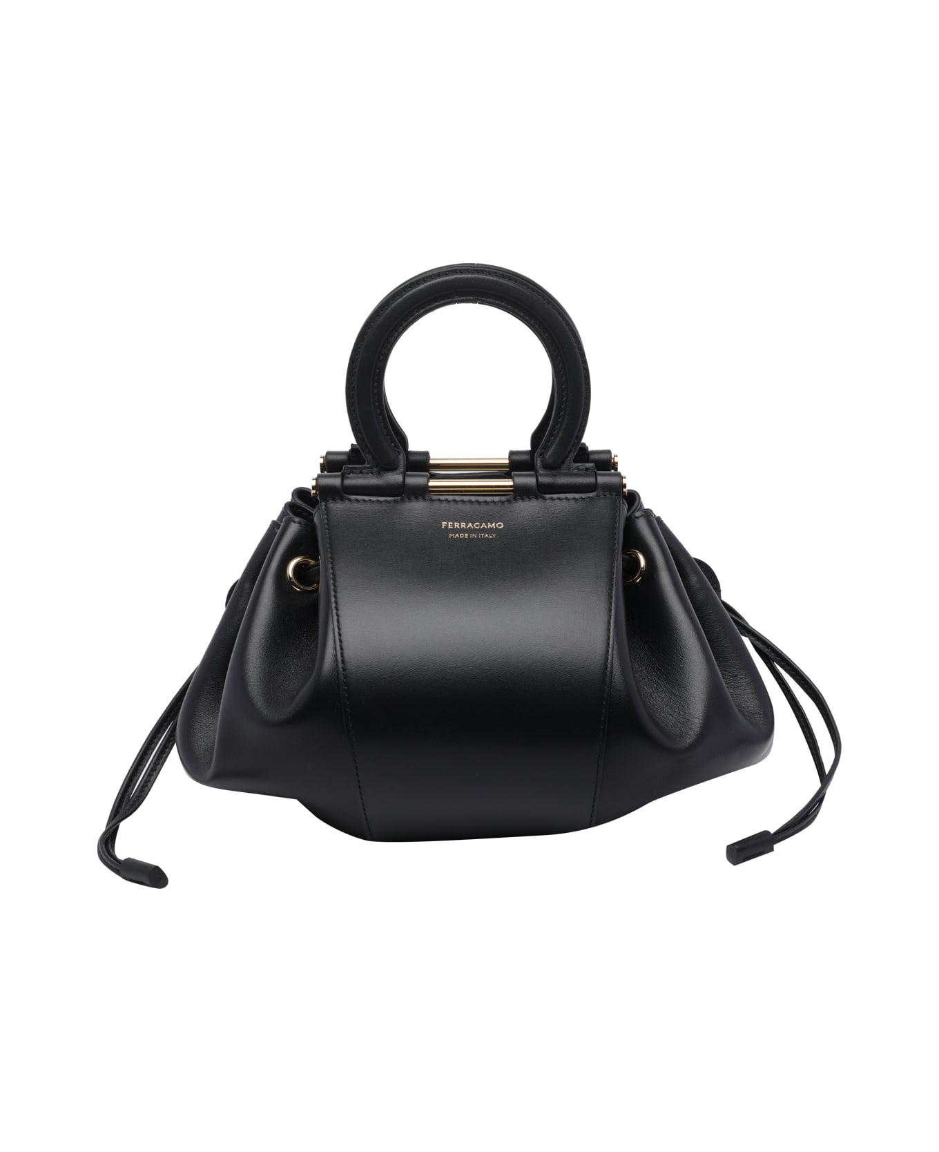 Ferragamo black Gancio crossbody bag, coulisse closure, inner open pocket, 2 handles, adjustable and removable shoulder strap, logo Composition: 100% Calf Leather