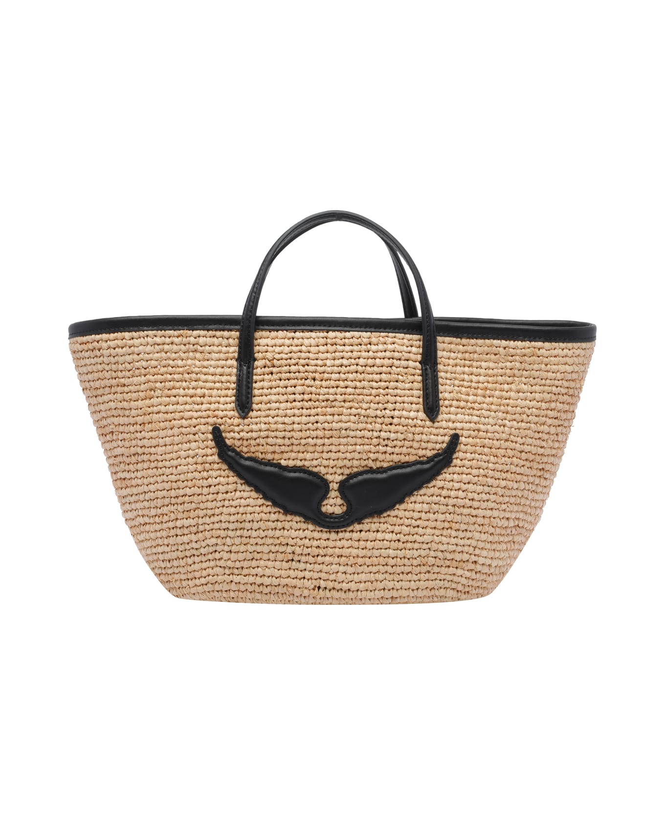 Zadig&Voltaire black and beige Le Wings Pannier bag, rafia effect, frontal logo in leather