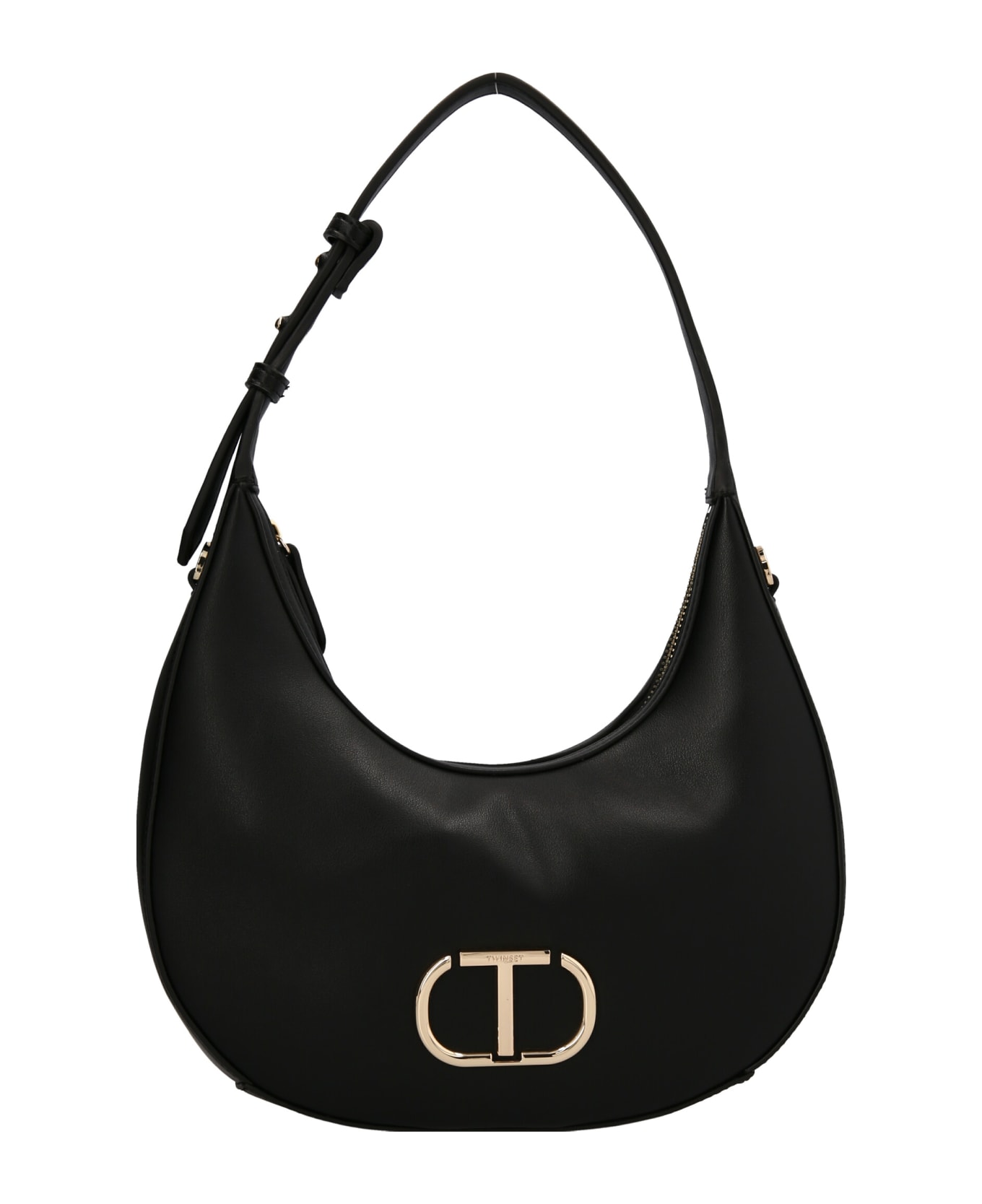 Leather-effect fabric crossbody bag with front logo application, zip closure, with adjustable handle and awith adjustable and removable shoulder strap.