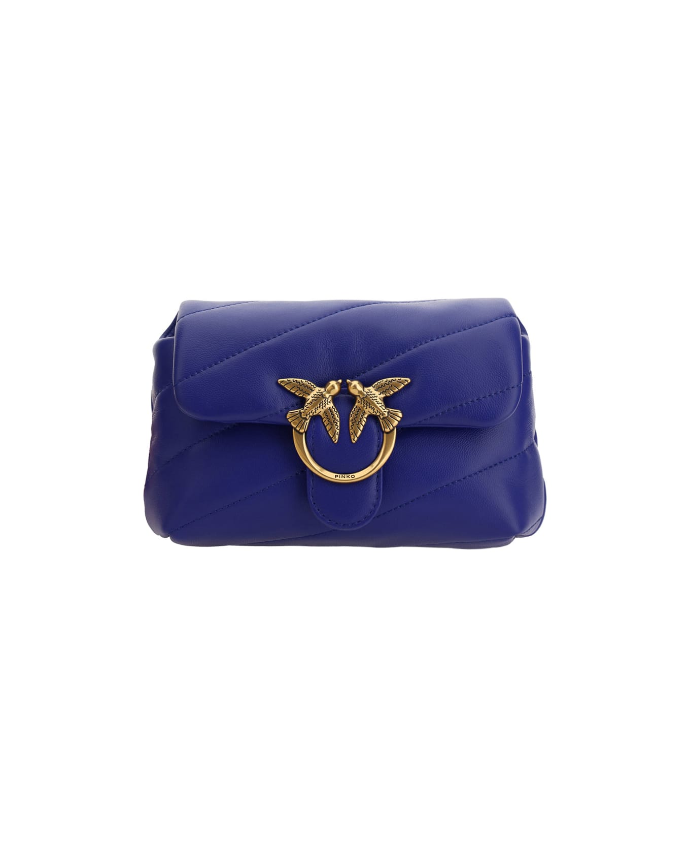 Calfskin love baby shoulder bag by pinko, front closure with magnetic button, iconic gold-plated love birds logo embossed on the front, quilted and padded design, double internal compartment, sliding chain shoulder strap, iconic brand monogram embroidered tone-on-tone on the back.