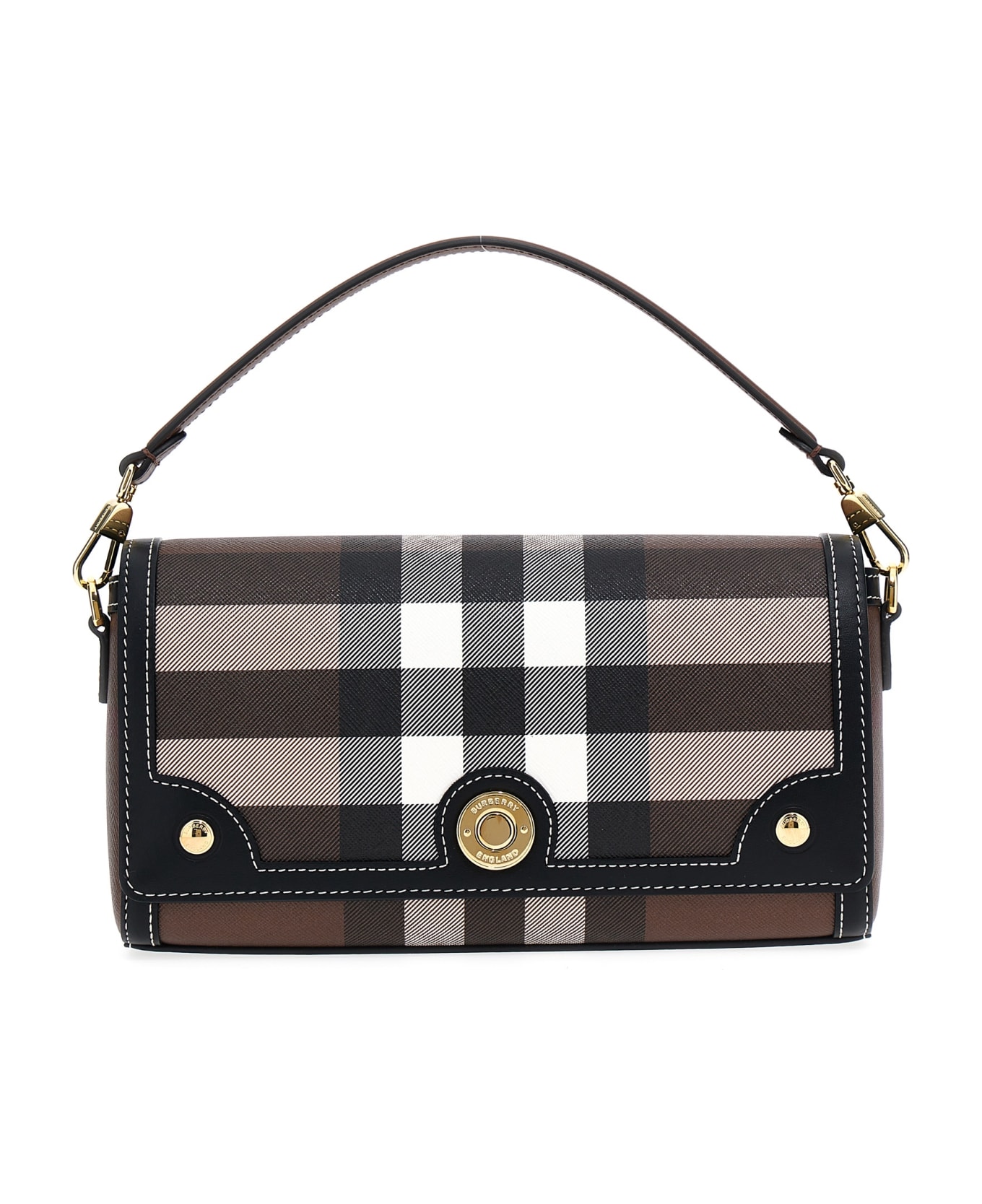 Notes small leather crossbody bag with stitching and a Burberry Check check pattern, shiny snap button closure with engraved logo, top handle or awith adjustable and removable shoulder strap with jacquard logo. : The main material of the product is made of at least 30% materials of biological origin. Biological materials are derived from renewable natural resources, such as plants or castor oil.