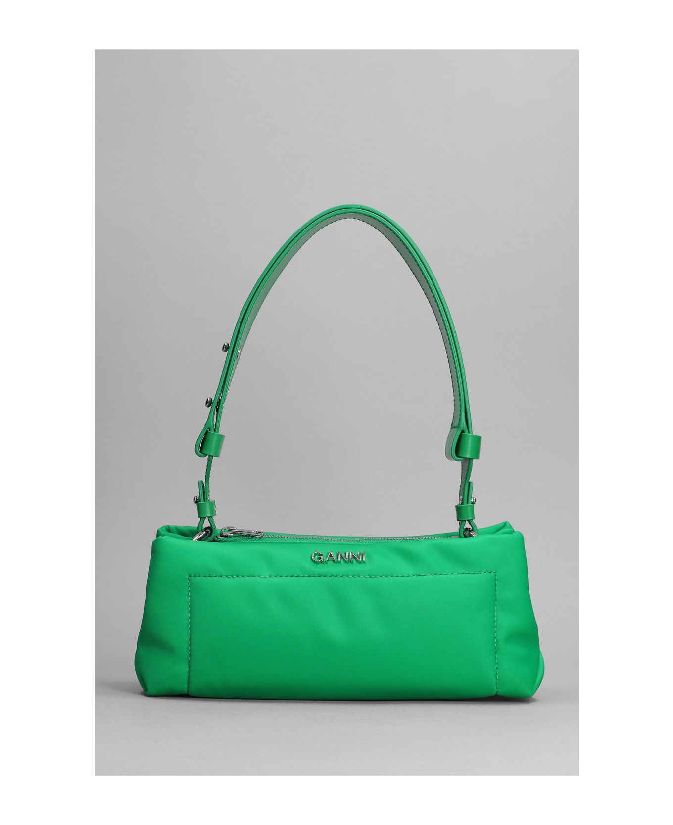 Shoulder bag in green polyamide, Height 110 mm, Width 250 mm, detachable shoulder strap, zip clousure, stitching detail, metallic logo, Made in China