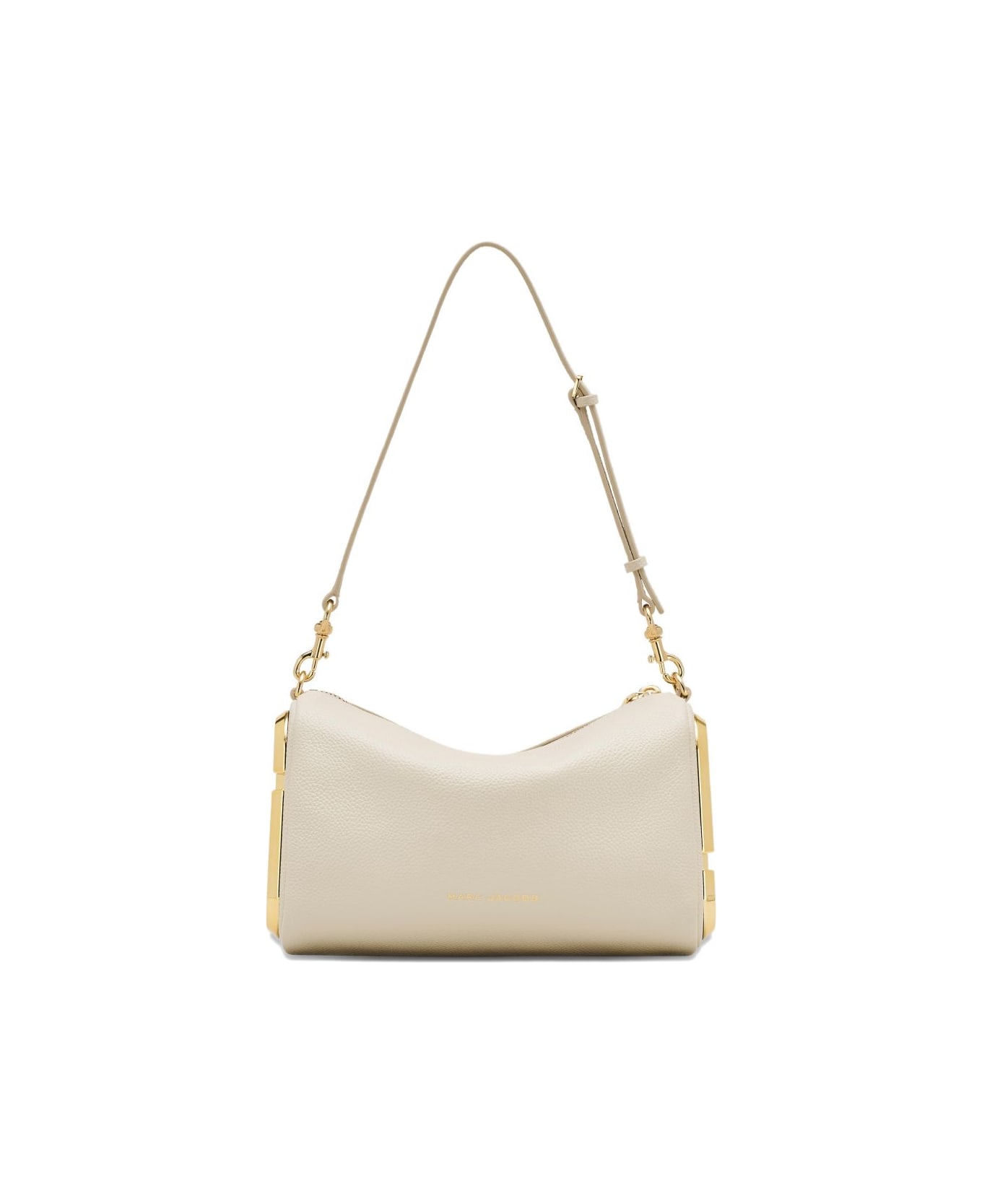 beige leather gold-tone hardware top zip fastening shoulder strap