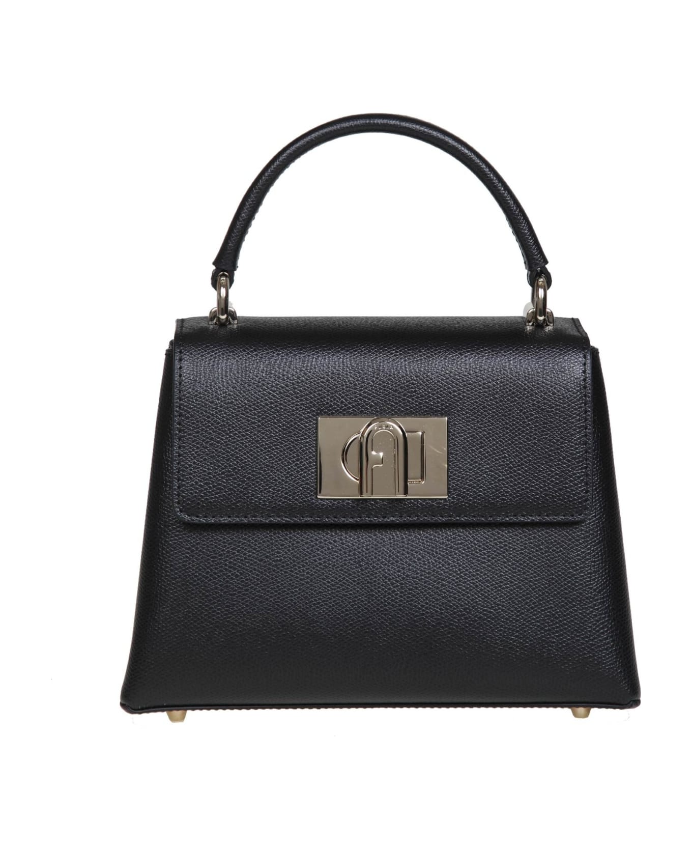 Furla 1927 mini bag black colour rigid leather handle black leather shoulder strap twist lock with silver finish internal composition: 100% polyester external composition: 100% leather height: 20cm length: 16cm depth: 9cm made in bulgaria