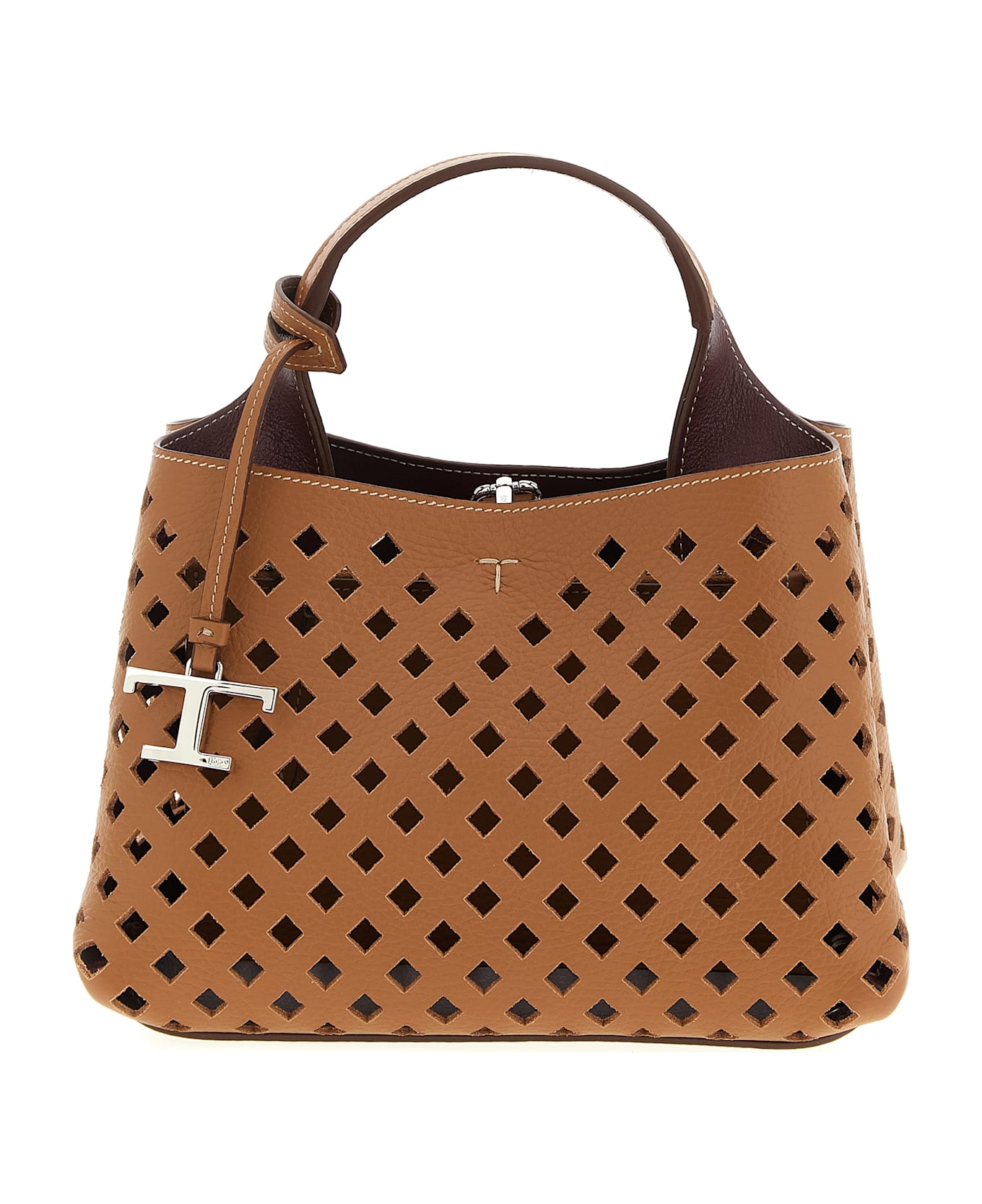 'Apa Micro' openwork leather handbag, removable pendant with metal T Timeless accessory, snap hook closure, adjustable and removable shoulder strap. Composition: 100% calfskin leather (Bos Taurus)