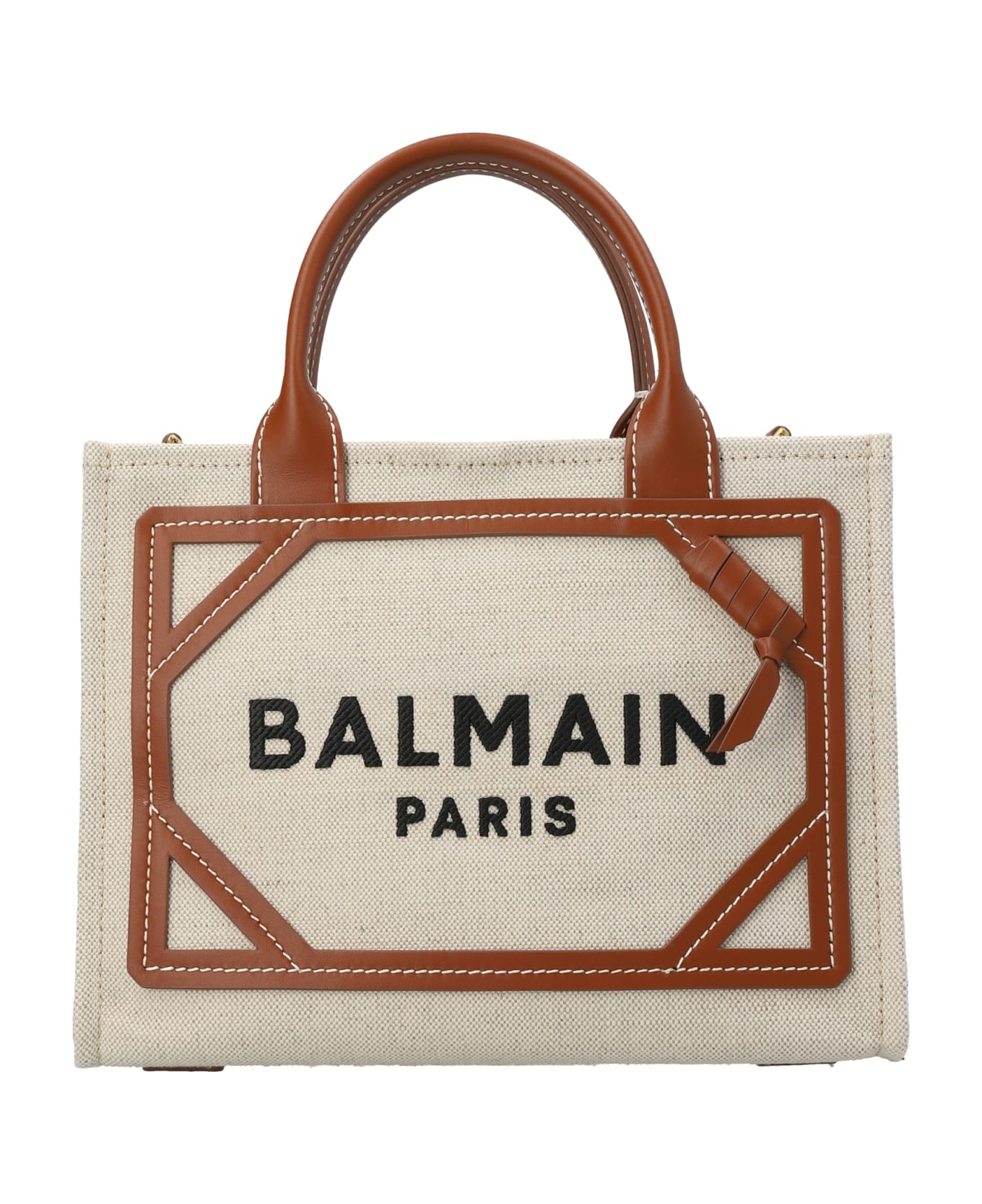 B-army' small shopping bag in canvas featuring leather inserts and a front logo. Composition: