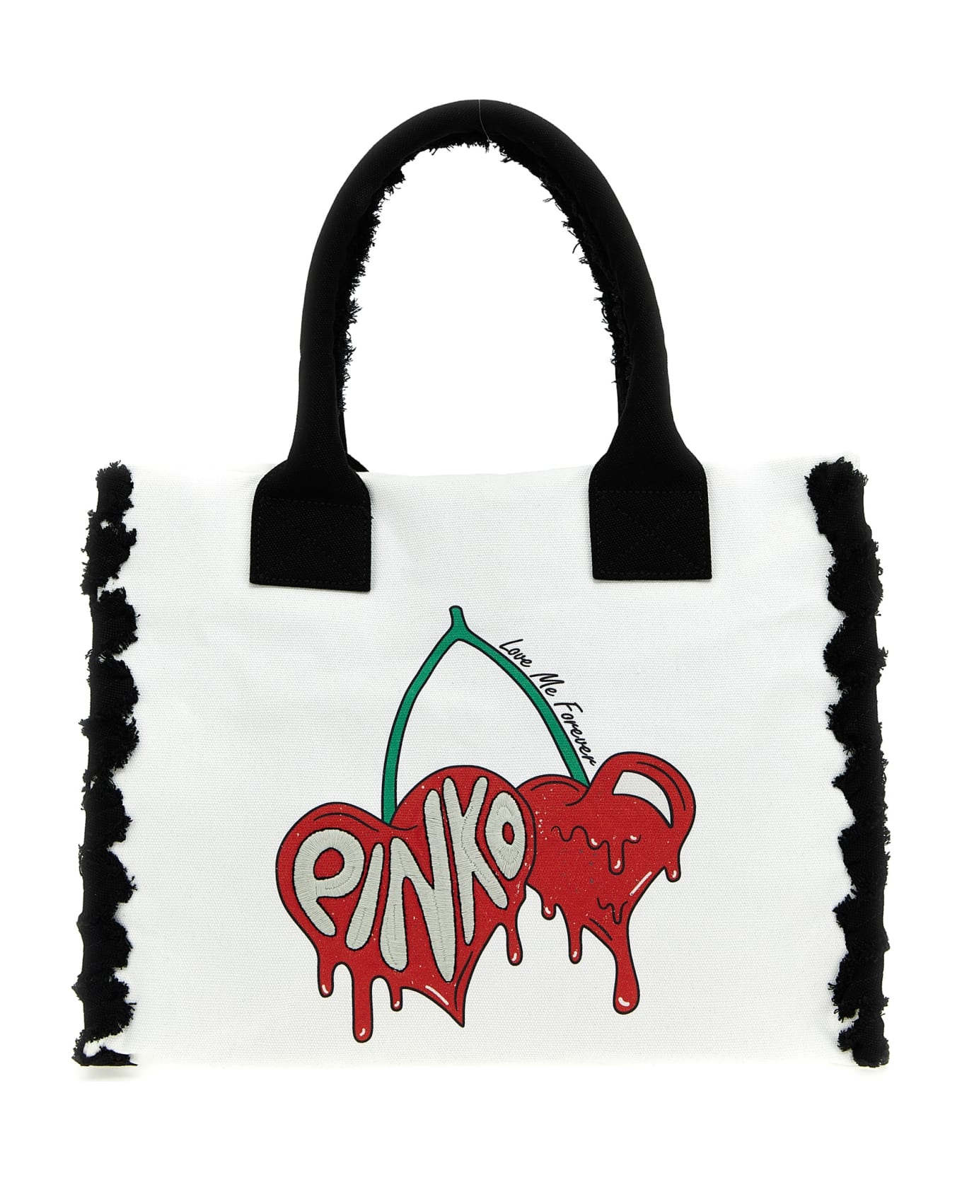 Beach' canvas shopping bag with multicolor print, front logo embroidery, zip closure and frayed details. Composition: