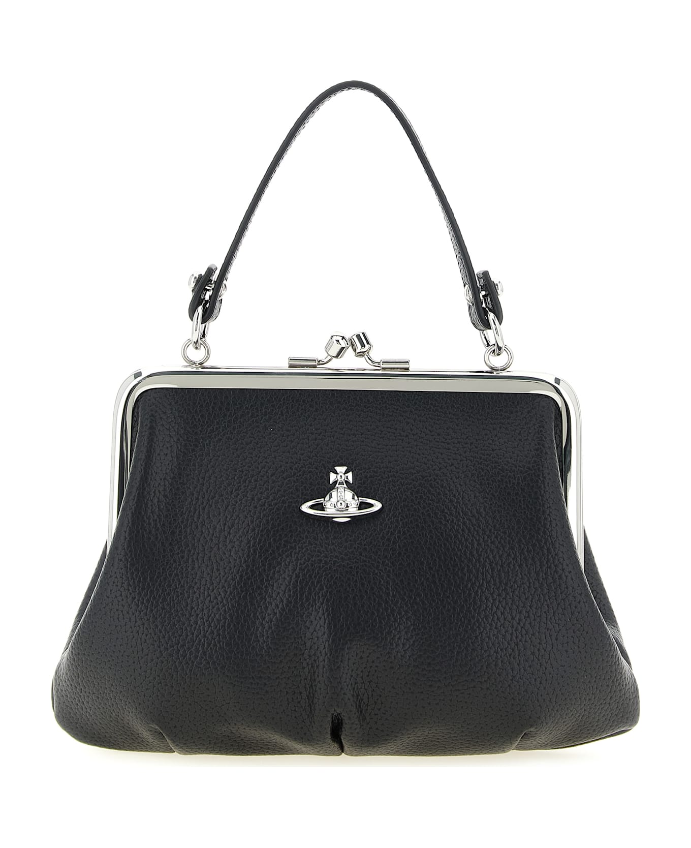 'Granny Frame' hammered PU handbag, front metal Orb logo, snap closure, removable handle, cotton lining, removable chain shoulder strap. Composition: 100% polyurethane