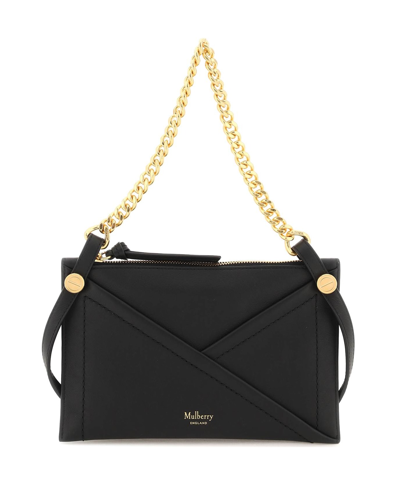 Burberry's envelope-like handbag, crafted in smooth leather featuring a leather handle that can be swapped with a chain handle. Zipped closure, leather interior and gold-finished metalware.