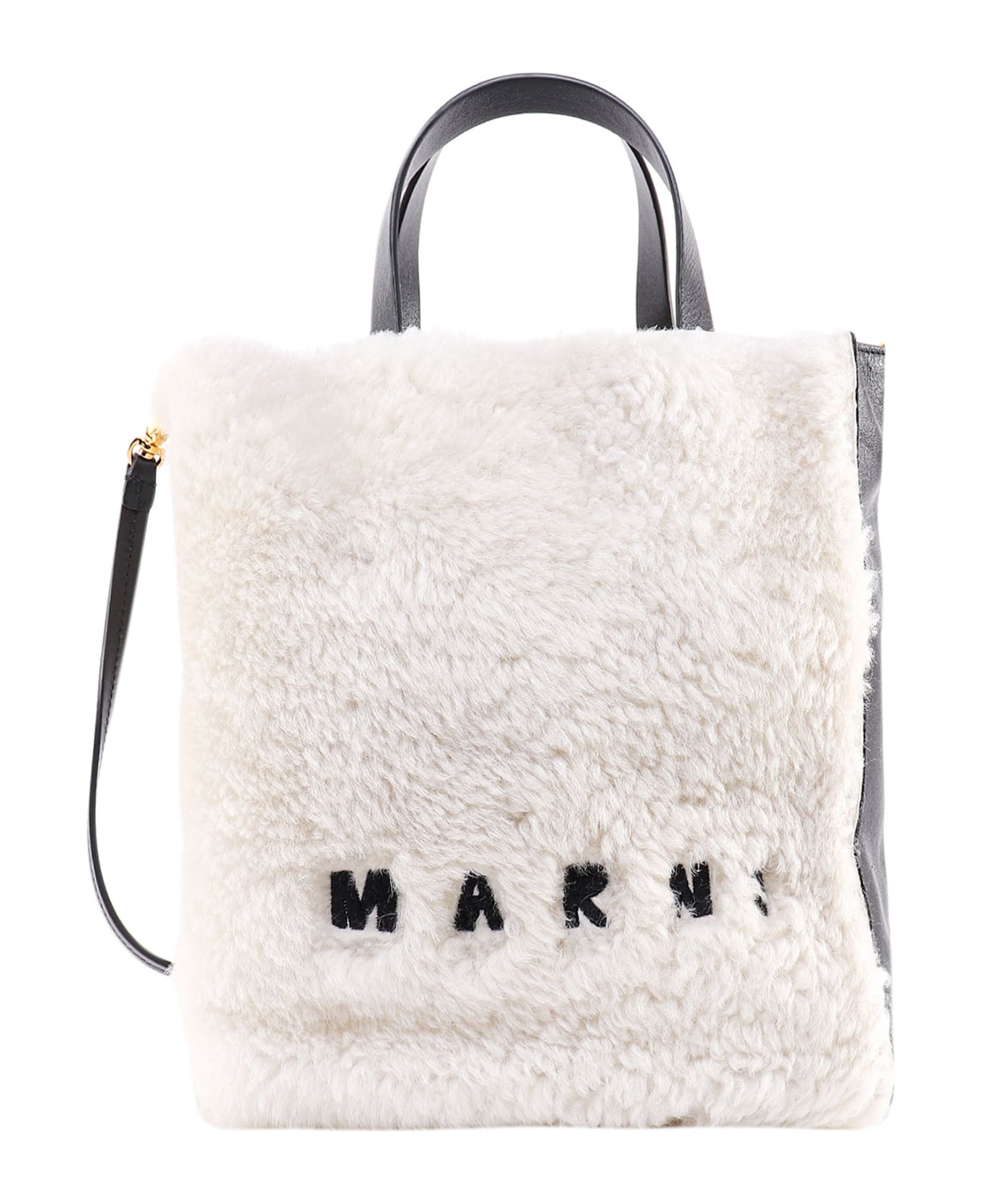 Shearling and leather handbag with embroidered logo - Without Closure - Adjustable And Removable Shoulder Strap - One Internal Pocket With Zip - Made In Italy - Leather