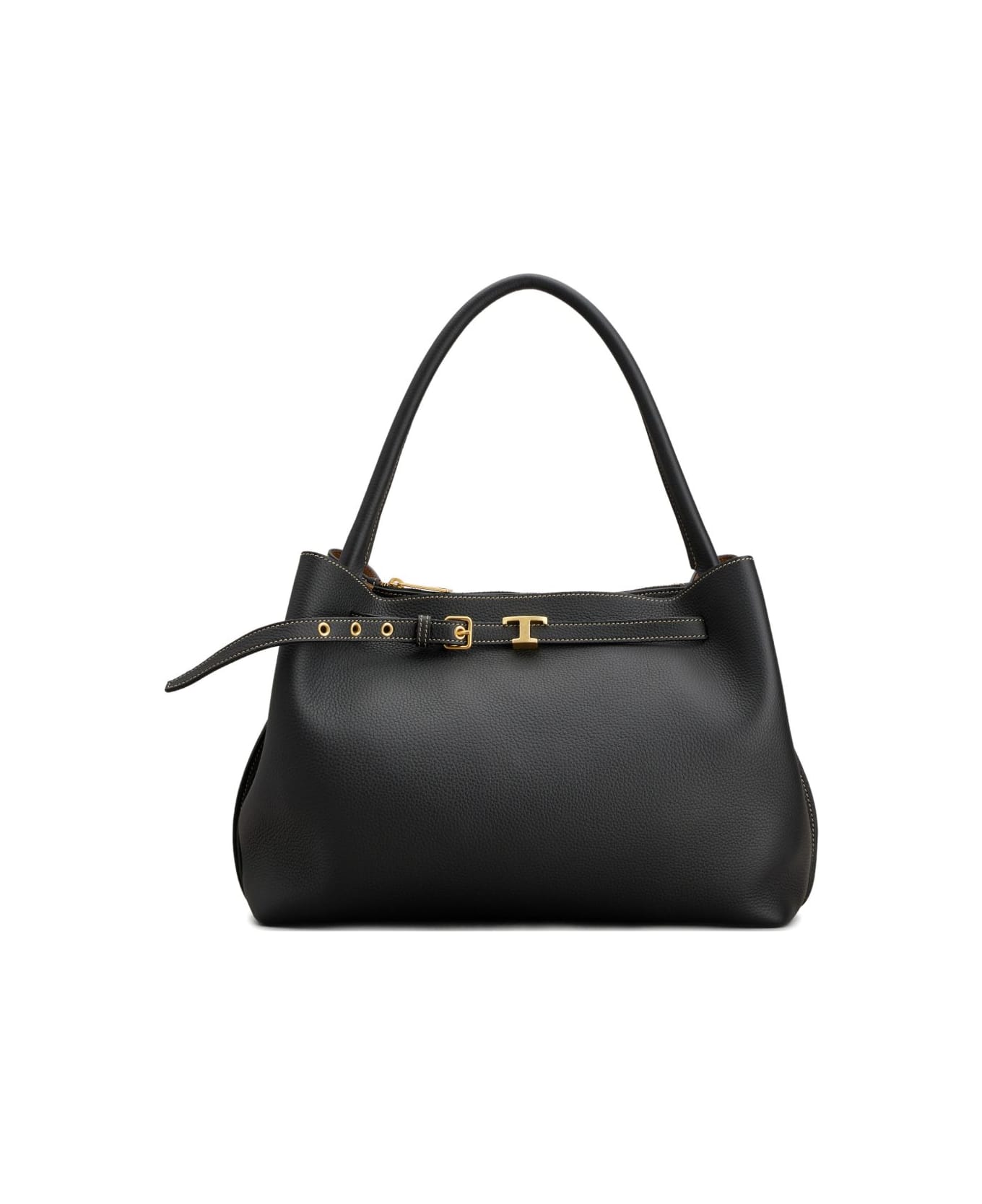 black top handle adjustable buckle gold-tone hardware zip-fastening bar feet Composition: Calf Leather, 100%
