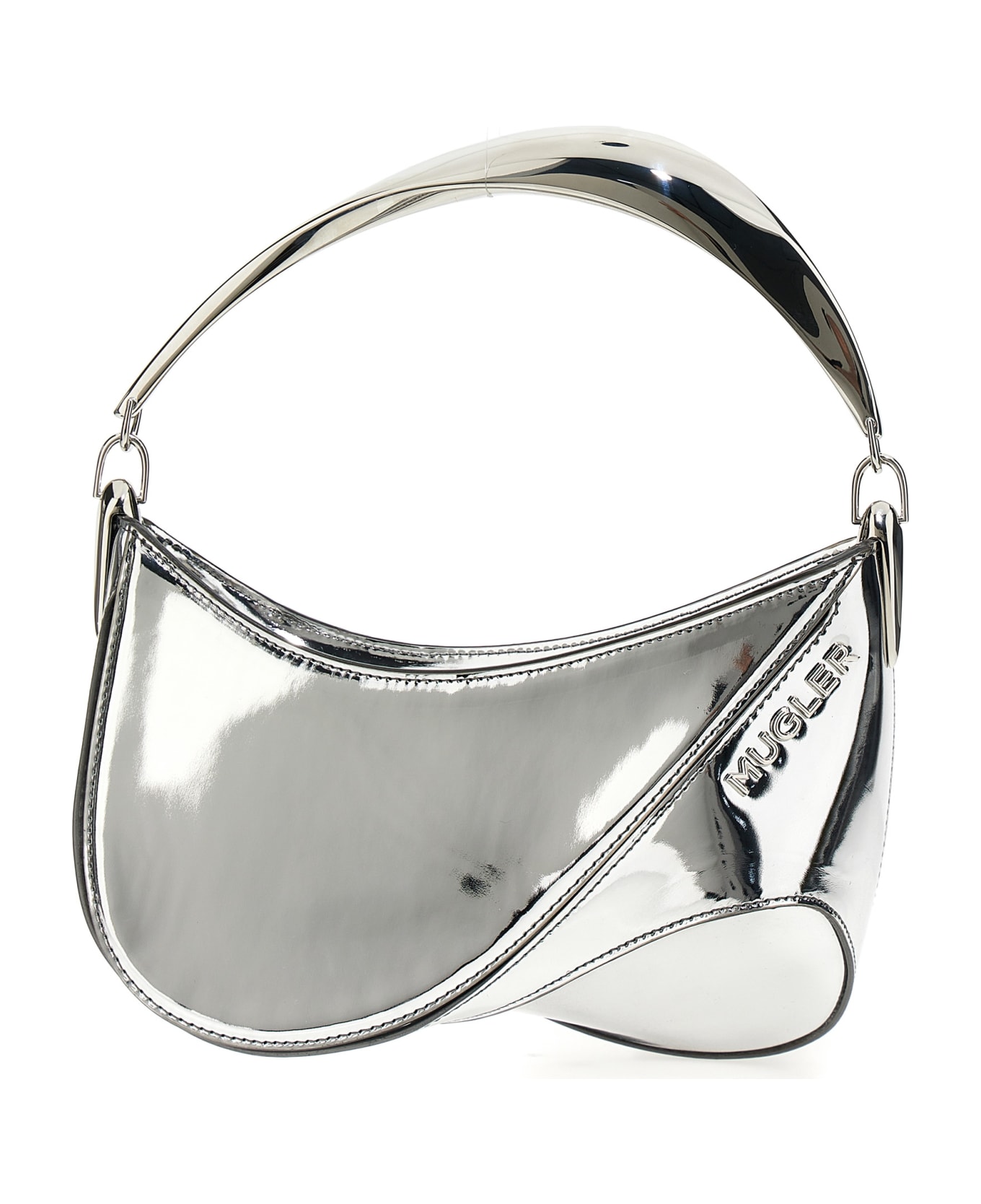 Small Plain Spiral Curve 01' handbag, the iconic first bag designed by Casey Cadwallader, made in laminated calf leather, logo and silver metal hardware, metal handle, zip closure, microskin lining and an additional shoulder strap.