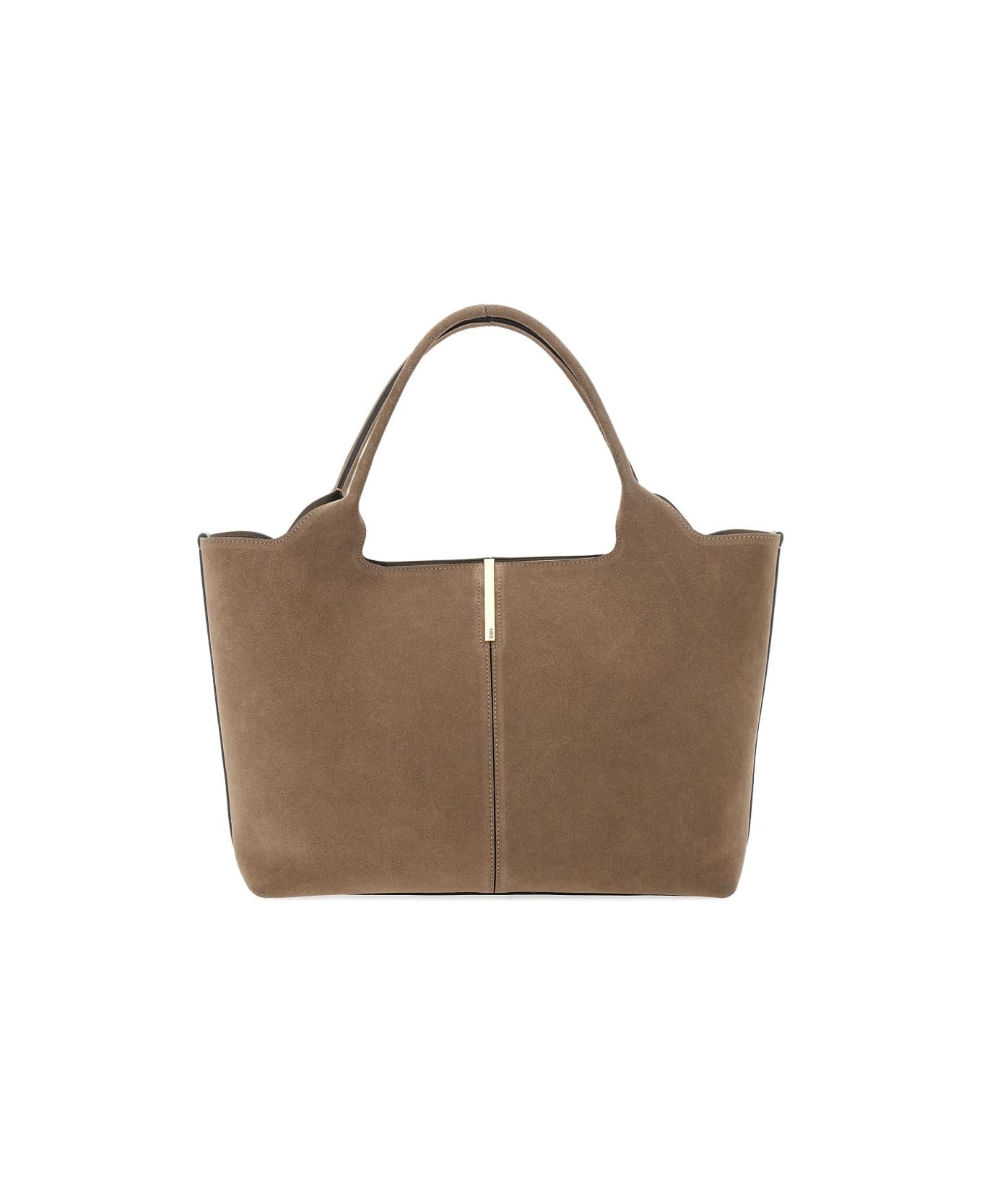 brown appliqué top handle tonal topstitching Composition: Calf Suede, 100%