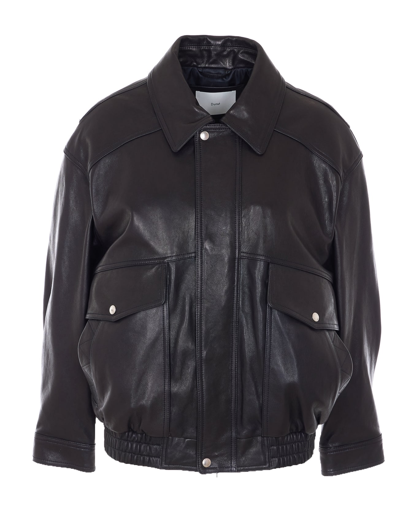 Dunst black vegan jacket, long sleeves, regular collar, pockets on the front, lateral pockets, zip closure Composition: 100% Polyester, 100% Synthetic Leather