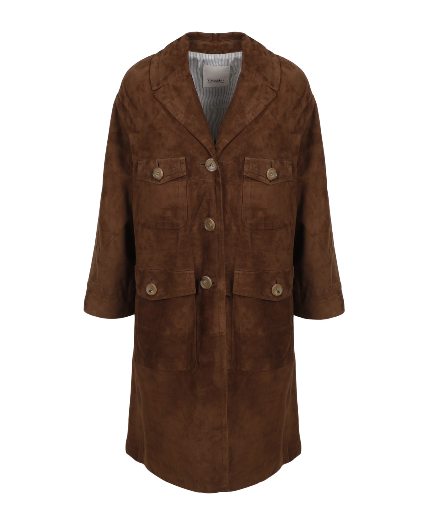 'Oliveto' duster coat in suede, design with lapel collar, four patch pockets on the front, single-breasted closure with visible buttons, by Max Mara "S" Composition: 100% Lambskin