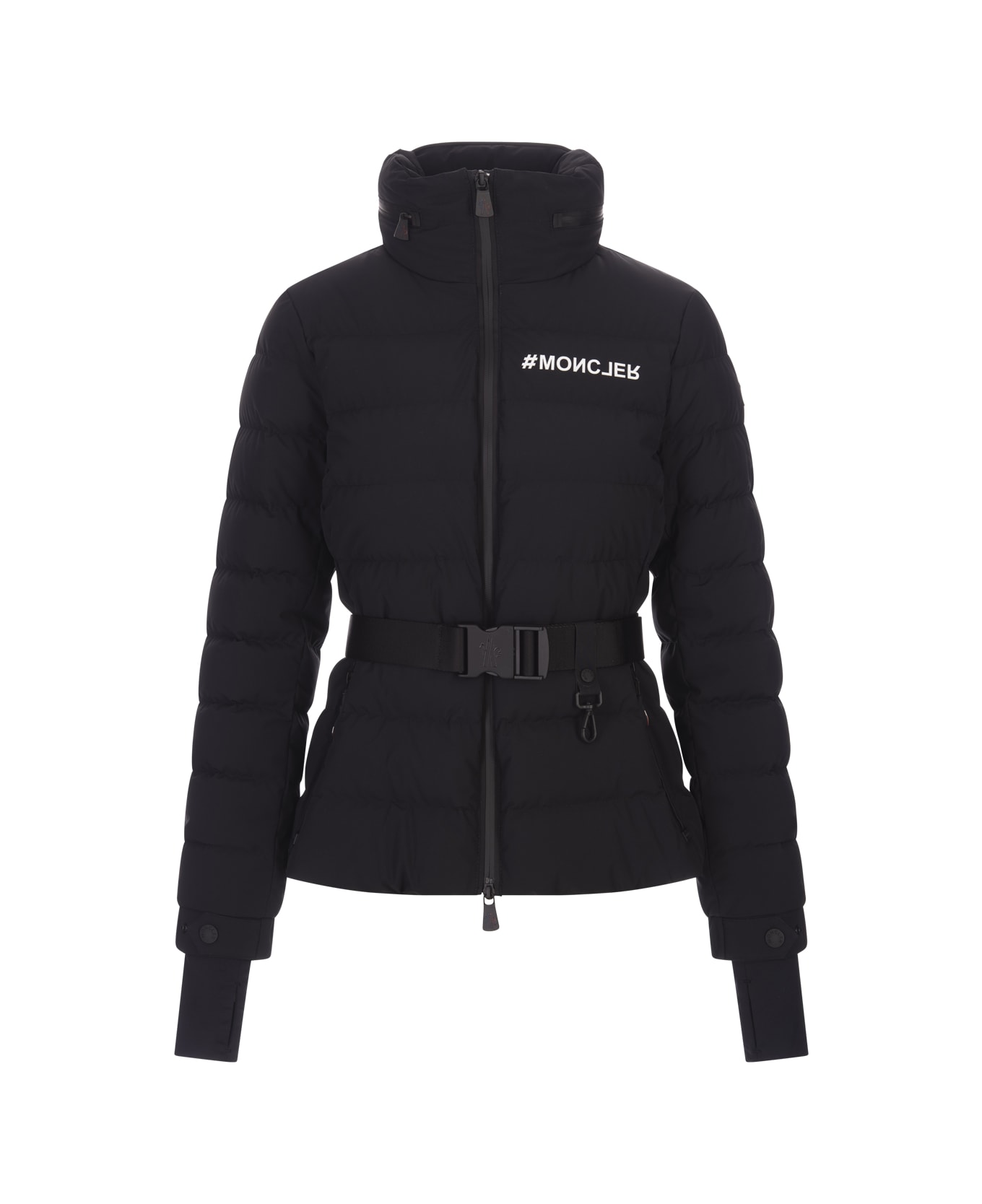 Black Bettex short down jacket by Moncler Grenoble made of 2 layers of 4 way stretch technical poplin, a stretch fabric that facilitates movement. Model characterised by logoed details, down padding, stretch technical polyester lining, stretch jersey cuffs, Water Repellent Look zipped pockets, elasticated inner waistband at the back, 2 way split 2-way Water Repellent Look zip fastening, removable and adjustable belt with snap hook and Water Repellent Look zipped inner media pocket. The removable hood and gaiter cuffs provide additional protection from the elements, while multiple zipped pockets keep all your outdoor essentials safe. Slim fit. Tight shoulders and bust. Tight waist.