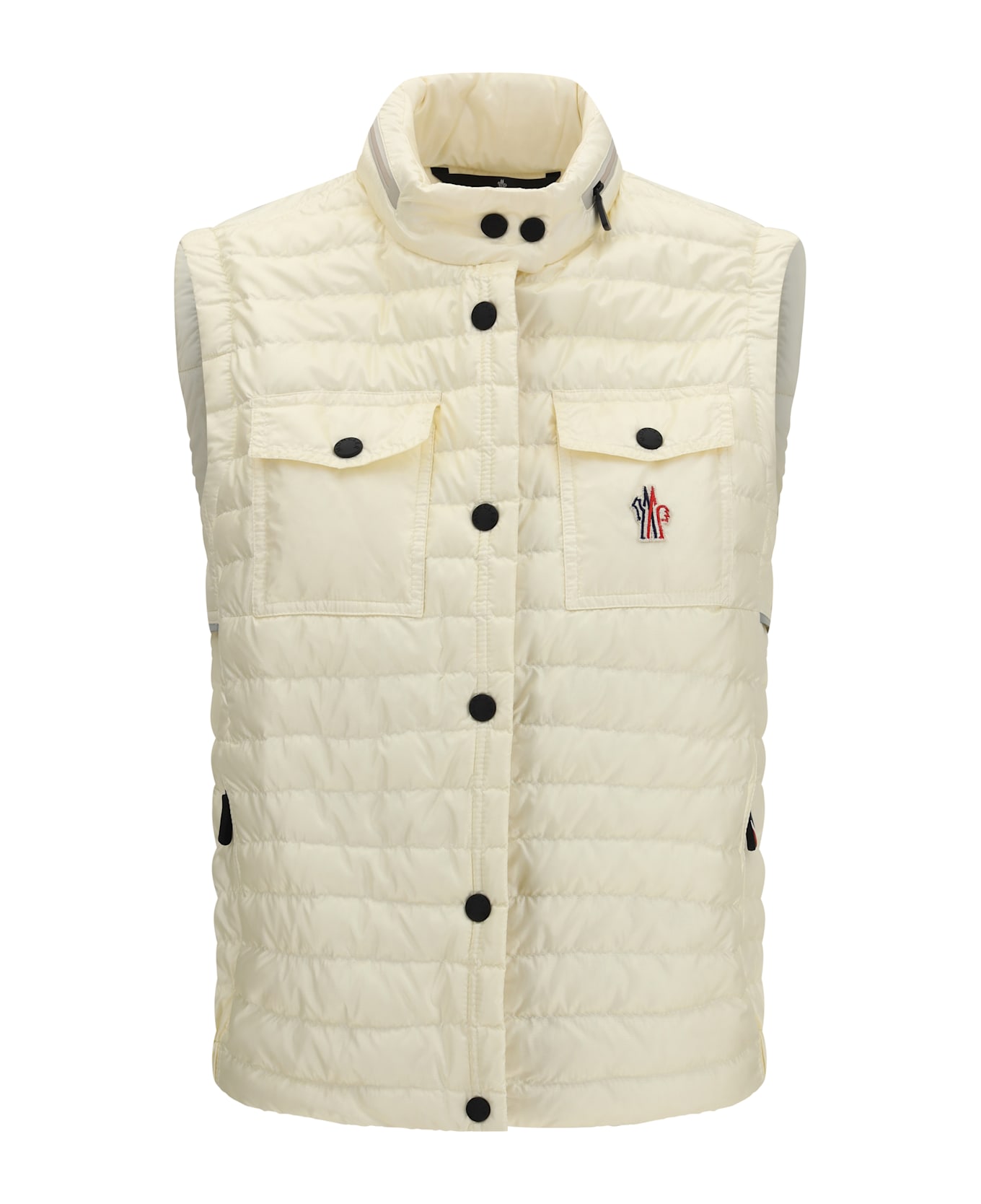 The gumiane vest by moncler grenoble blends technical functionality with contemporary design. a front snap-button closure ensures ease of wear, while two flap chest pockets and zippered side pockets provide practical storage. the logo patch on the chest adds a signature finishing touch, making this gilet perfect for a dynamic, performance-driven style.