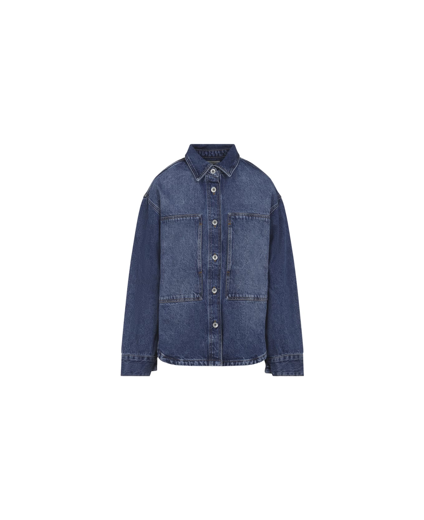 blue chest pockets button fastening long sleeves point collar buttoned cuffs