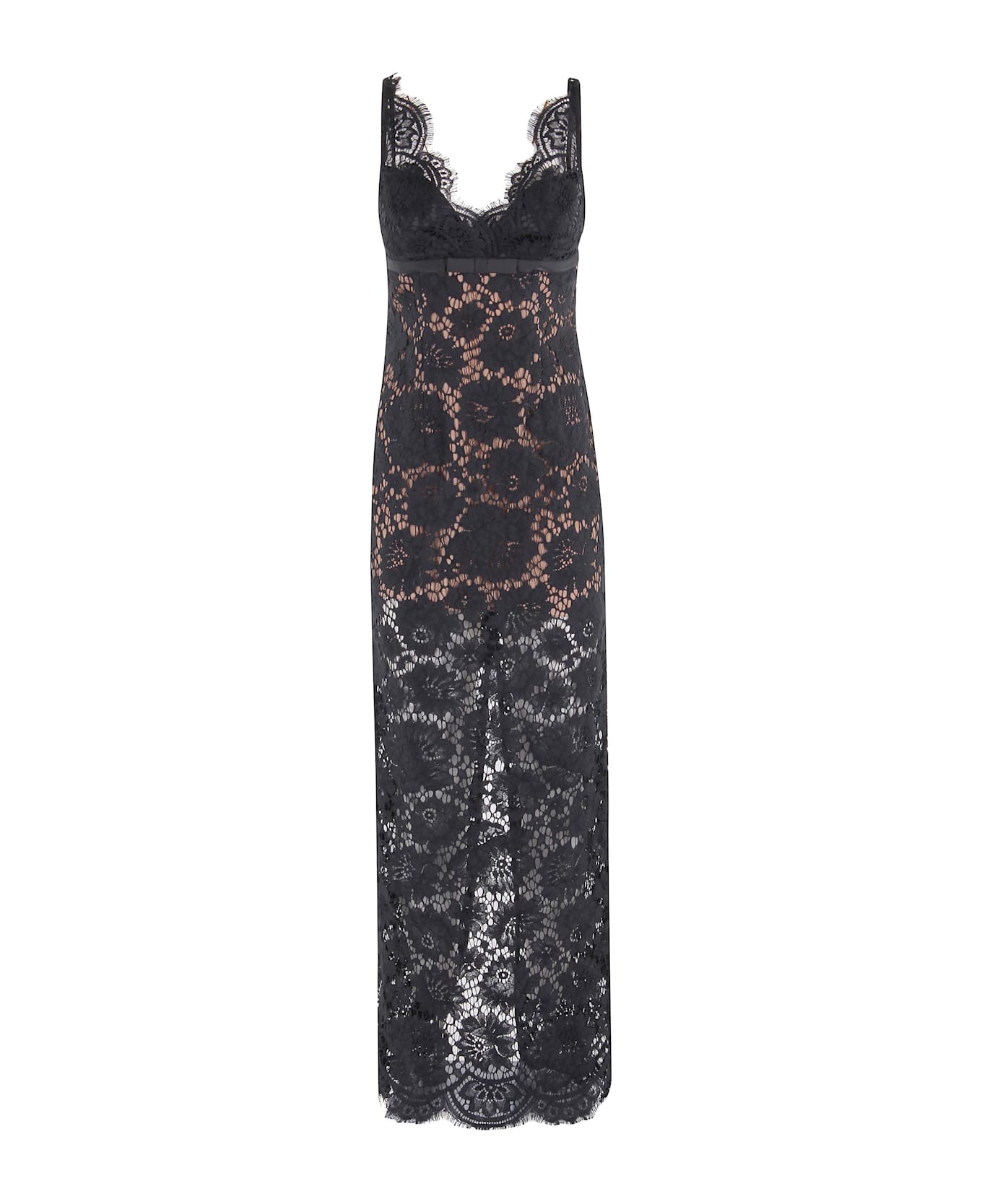 Floral Lace Maxi Dress - Self-Portrait - Black color - Floral lace fabric - V-neck - Adjustable straps - Long skirt with back slit - Back zipper closure