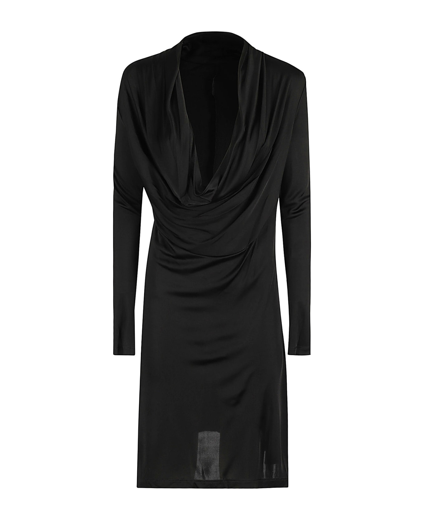 Cowl dress - Helmut Lang - Black color - Stretch fabric - Cowl neckline - Long sleeve - Flared skirt - Above the knee length - Regular fit