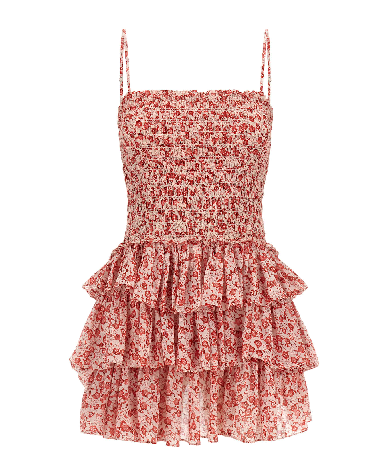 'Elodie' mini dress in cotton with all-over floral print, smock stitch elastic, thin adjustable straps, ruffles with curls. Composition: 100% cotton