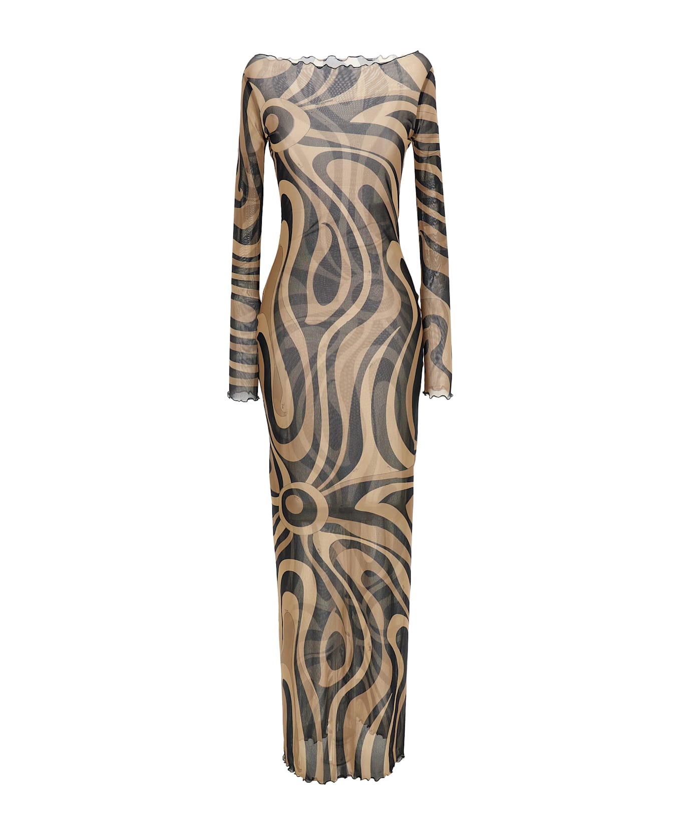 Long dress in semi-transparent stretch tulle with marble print, boat neck, long sleeves. This product, like many other Pucci items, is made with an all-over print that falls differently on each garment The product shipped may differ from the one in the picture.