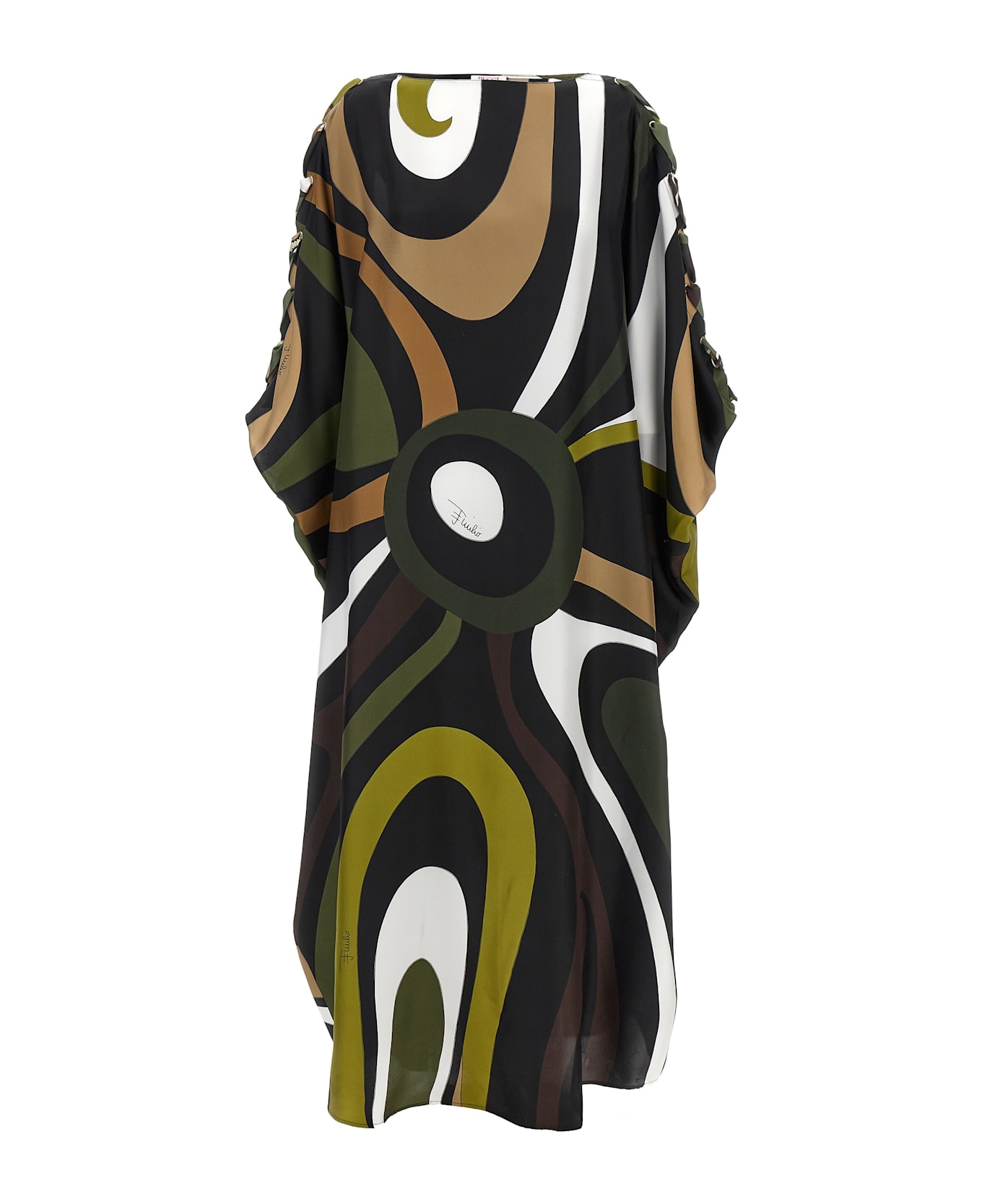 Long dress in Big Marble print all over silk twill, caftan model, boat neck, 3/4 wide sleeves with top ribbon detail. This product, as well as many other Pucci items, is made with a print that falls differently on each garment The product shipped may differ from the one in the picture.