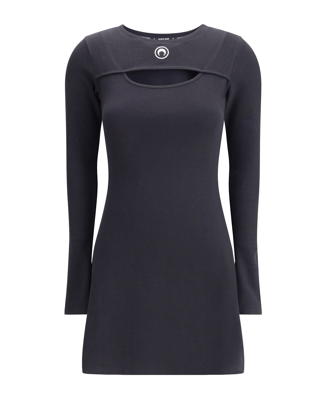 Marine serre's ribbed mini dress combines a fitted and comfortable silhouette with the brand's iconic details. the long-sleeved, crew-neck style is embellished with a contrasting embroidered logo on the front for an essential yet recognizable look. Composition: 95% % Cotton, 5% % Elastane