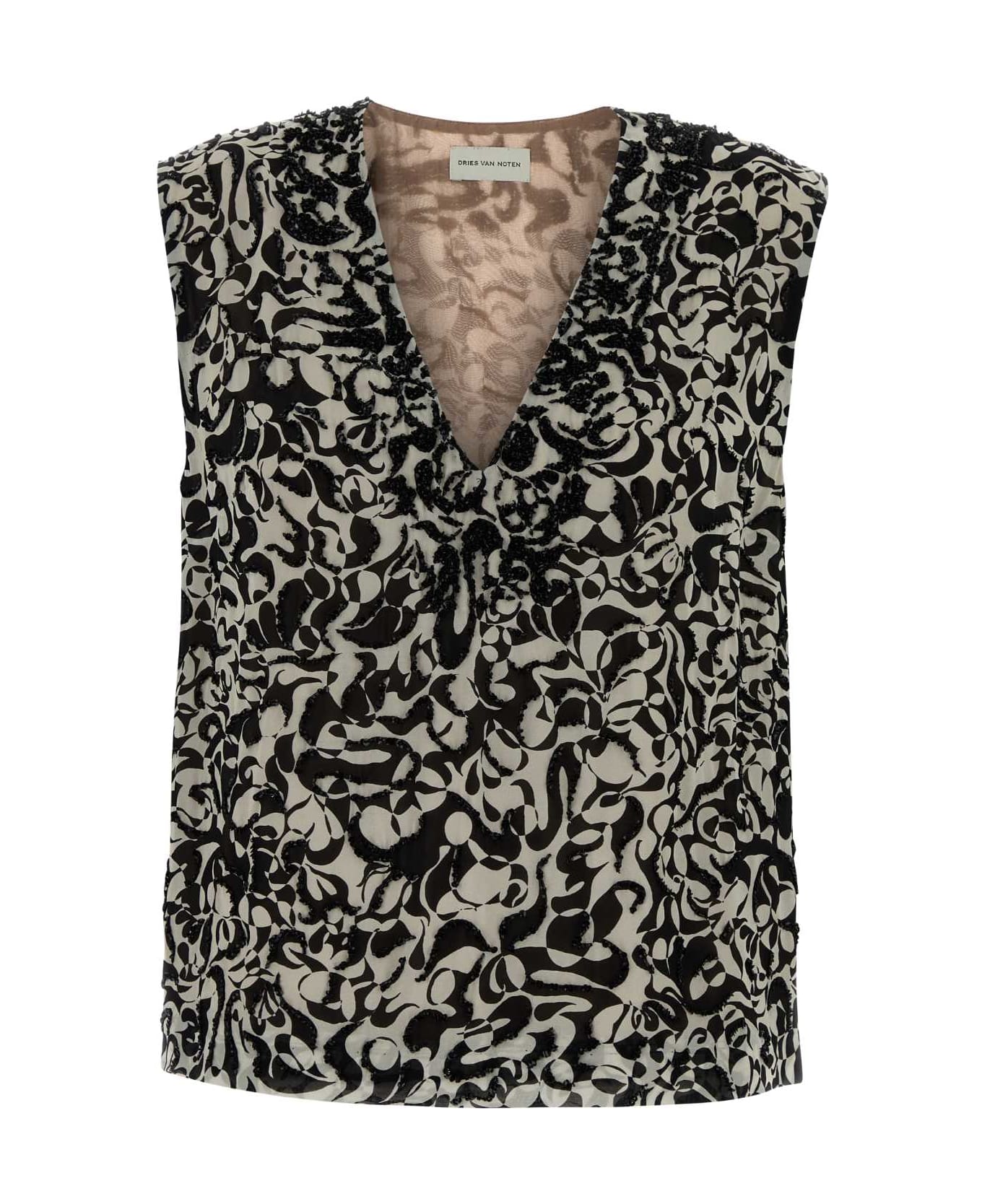 Printed Crepe College Top from Dries Van Noten