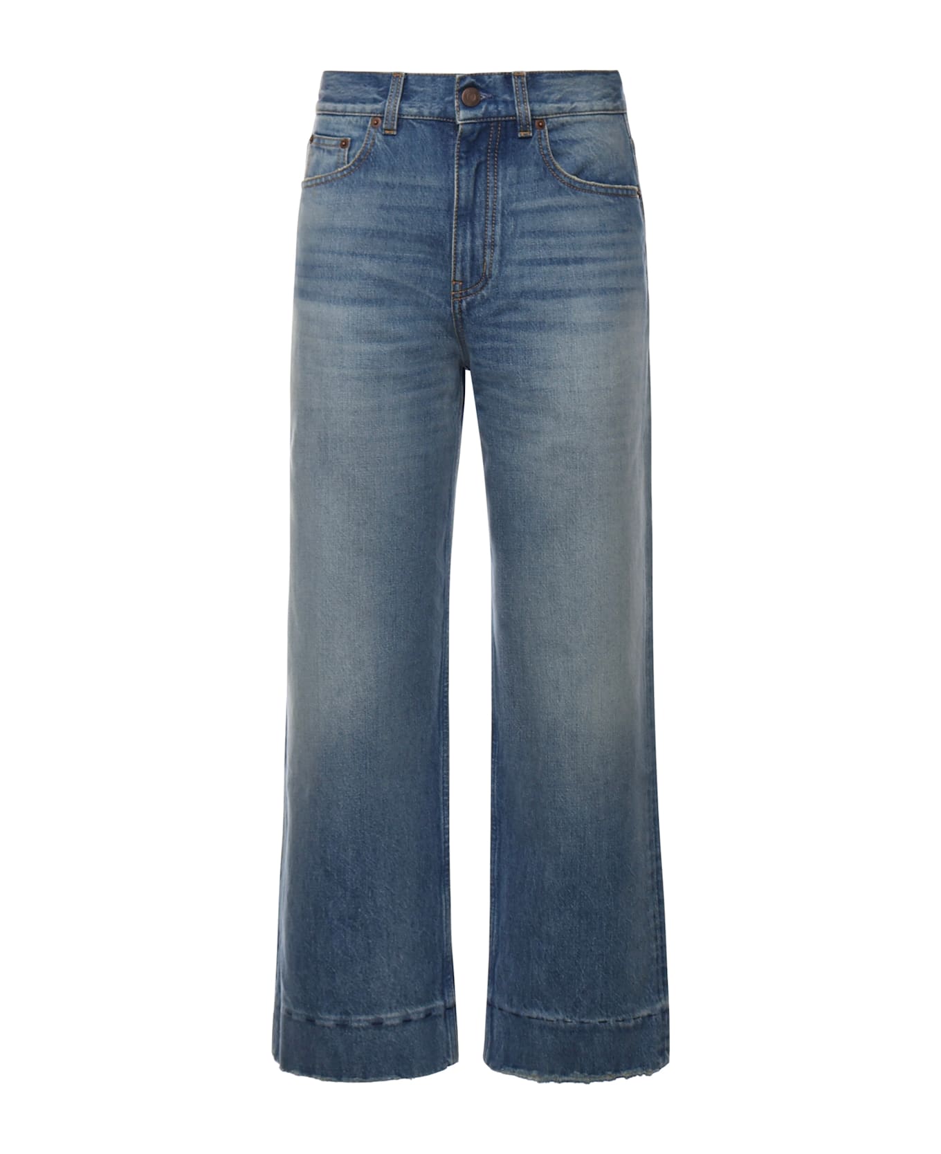 - Made of cotton denim - Button closure - Five pockets - High waist with belt loops - Wide leg - Logo patch - Made in Italy - Size shown is 25 - Designer color: Dream Blue