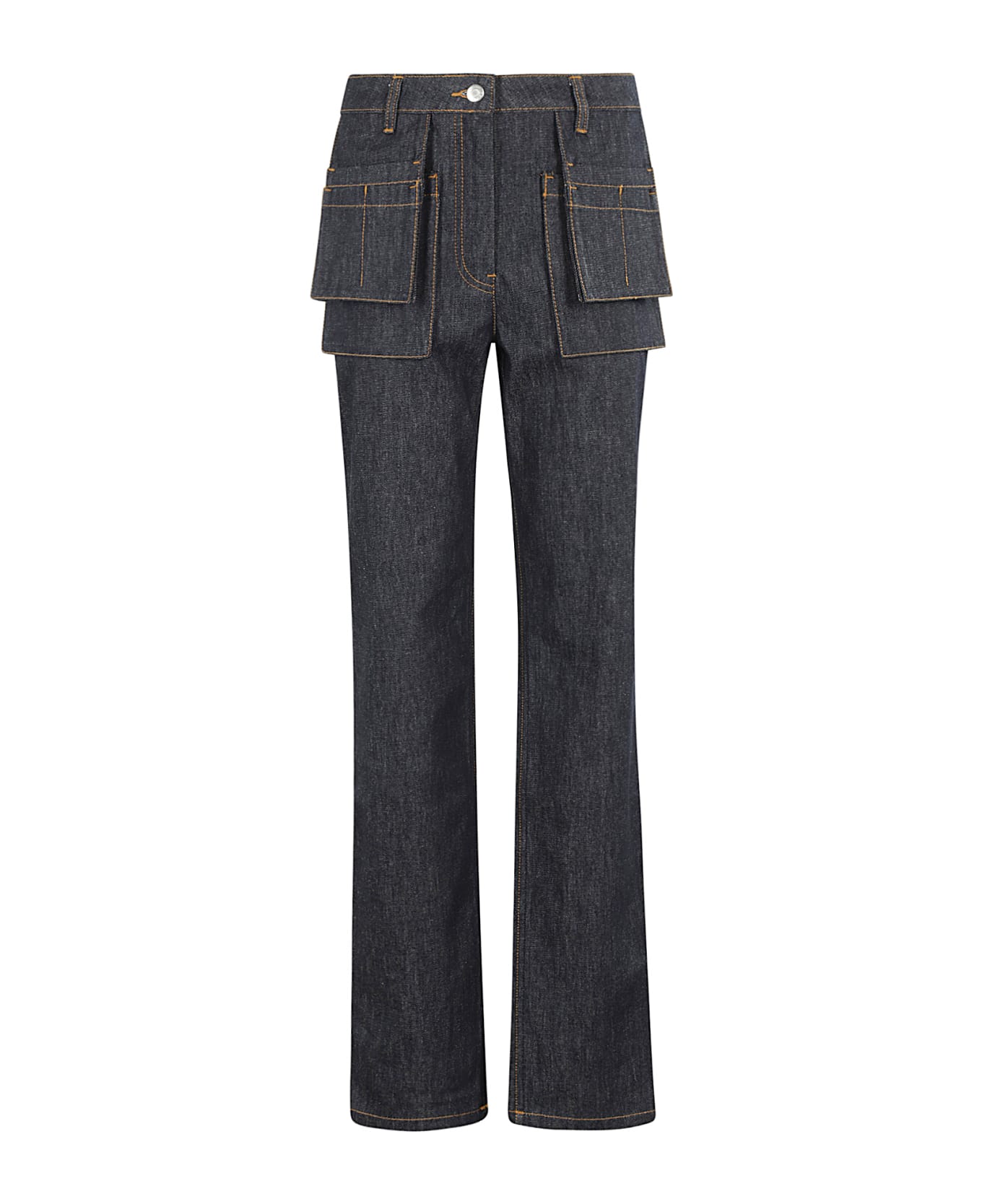 Utility Jeans - Helmut Lang - raw indigo color - front zipper and button closure - waist loops - side cargo pockets - back patch pockets - flared model