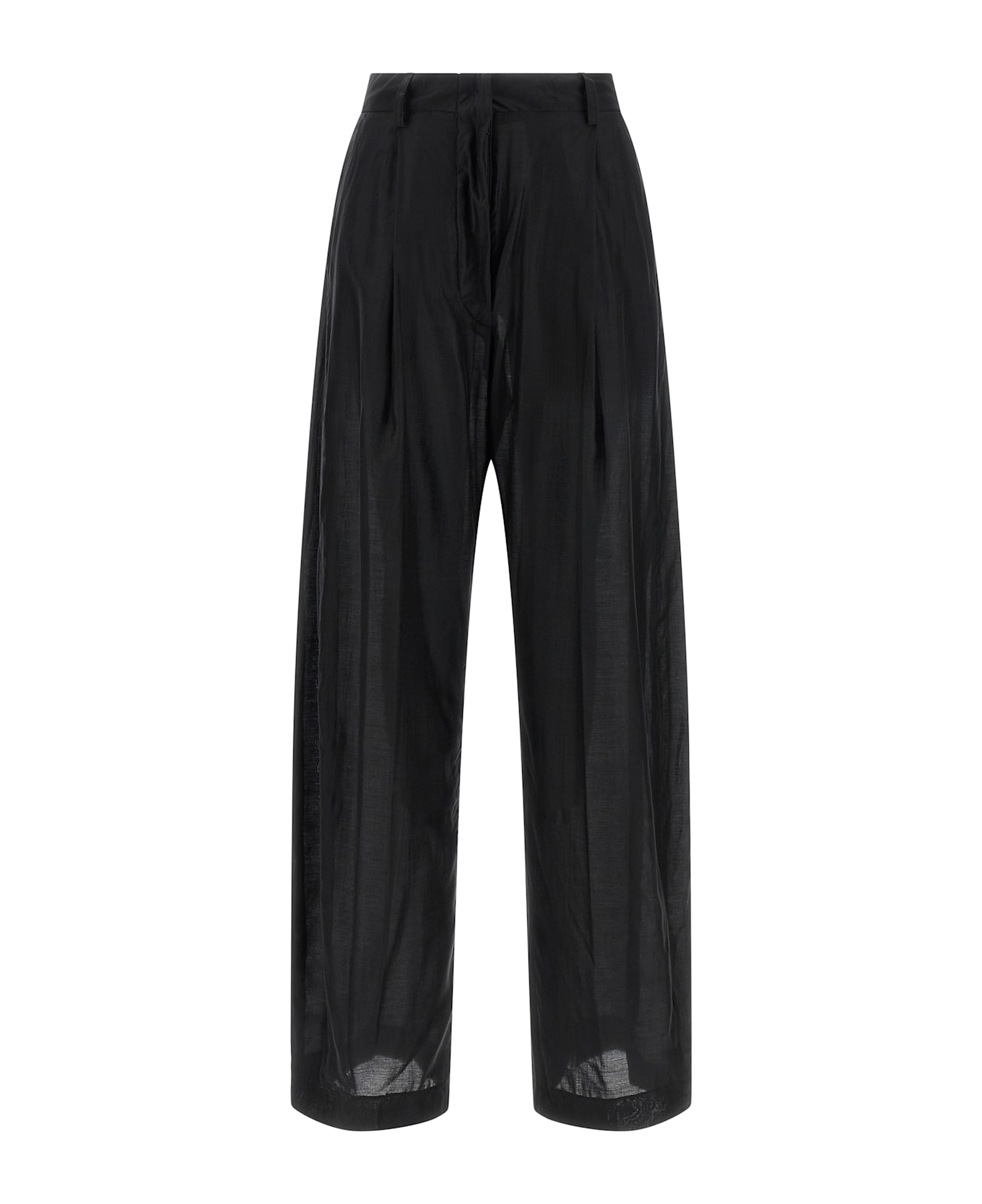 'Billie' light muslin pants, high waist, wide leg, pins, hook and front button zip closure, front American pockets, back welt pockets. Composition: 85% lyocell, 15% polyester