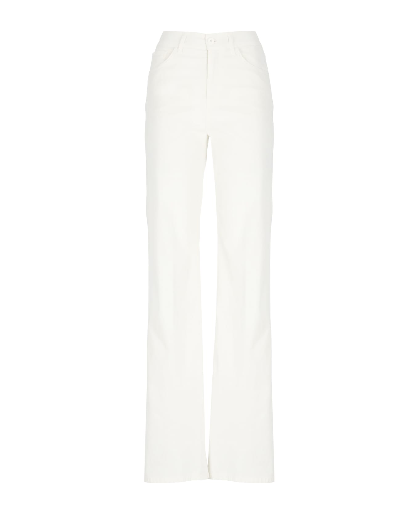 - Ivory Dond Up cotton blend trousers for woman - Front zip and button fastening - Belt loops - Five pockets