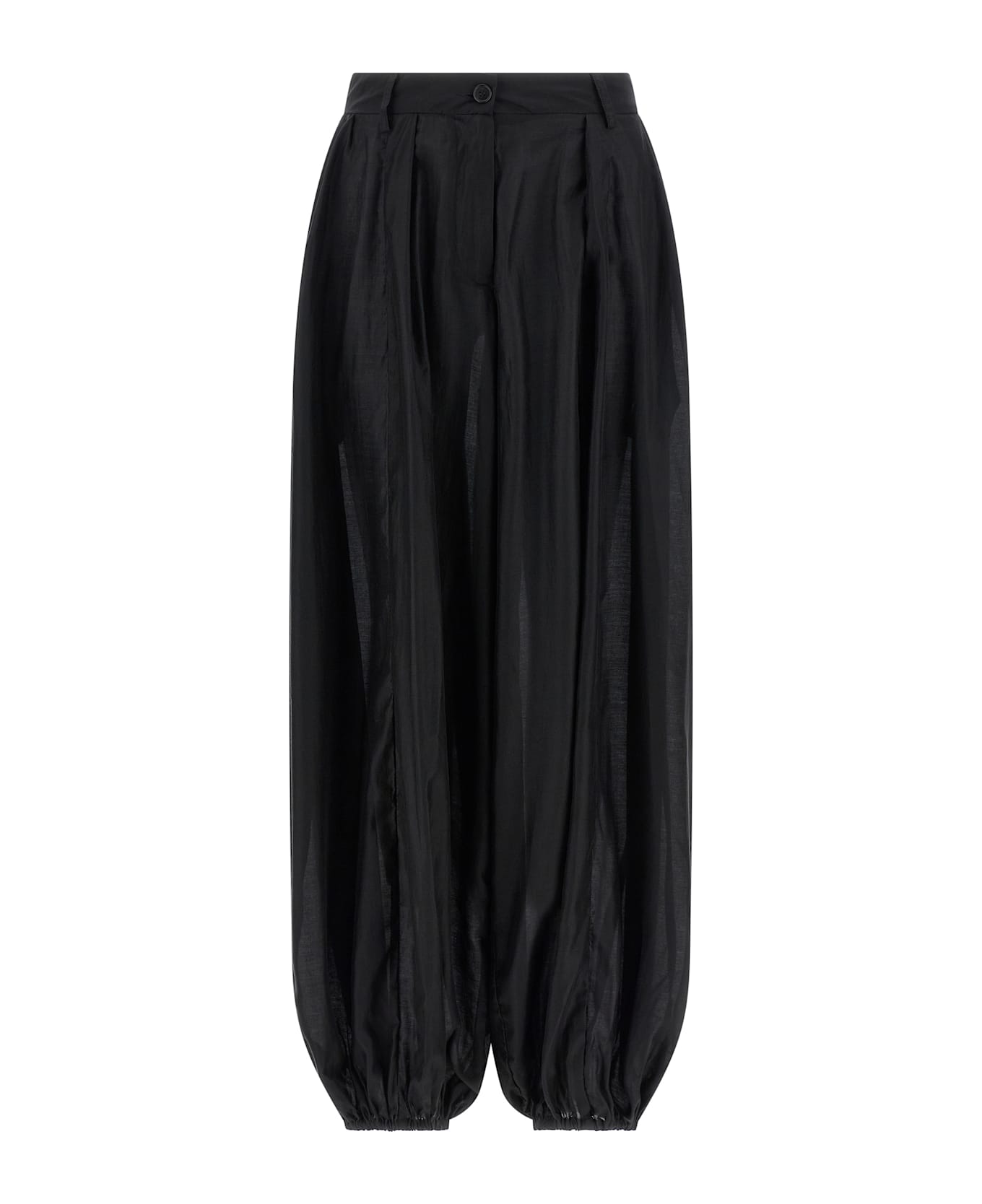 'Dilan' light muslin pants, wide waist, belt loops, front zip and hook closure, front pin tucks, side pockets, wide leg with elastic hem. Composition: 85% lyocell, 15% polyester