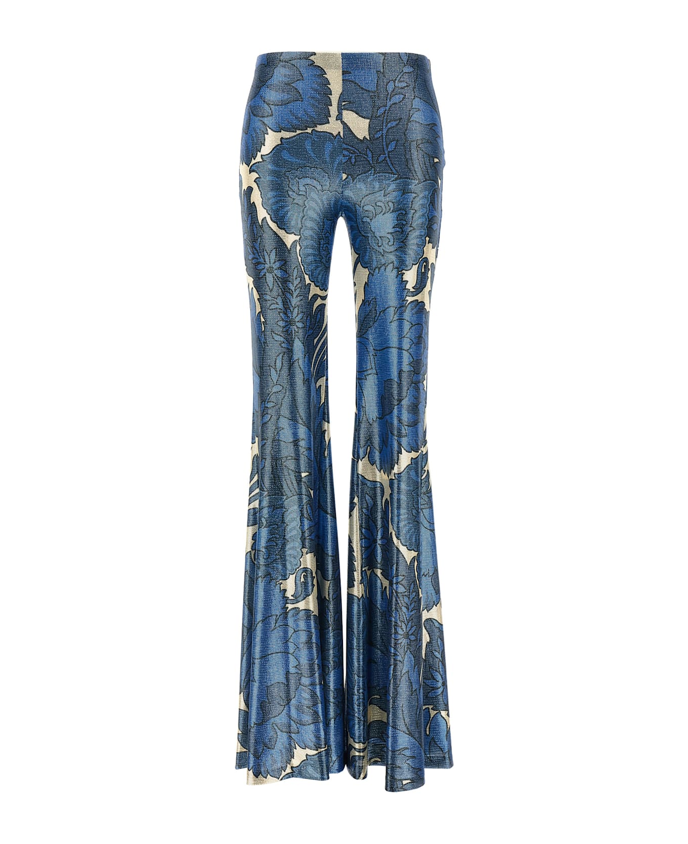 Floral print laminated jersey pants with flared leg and elastic waistband. Composition: 94% polyester 6% elastane